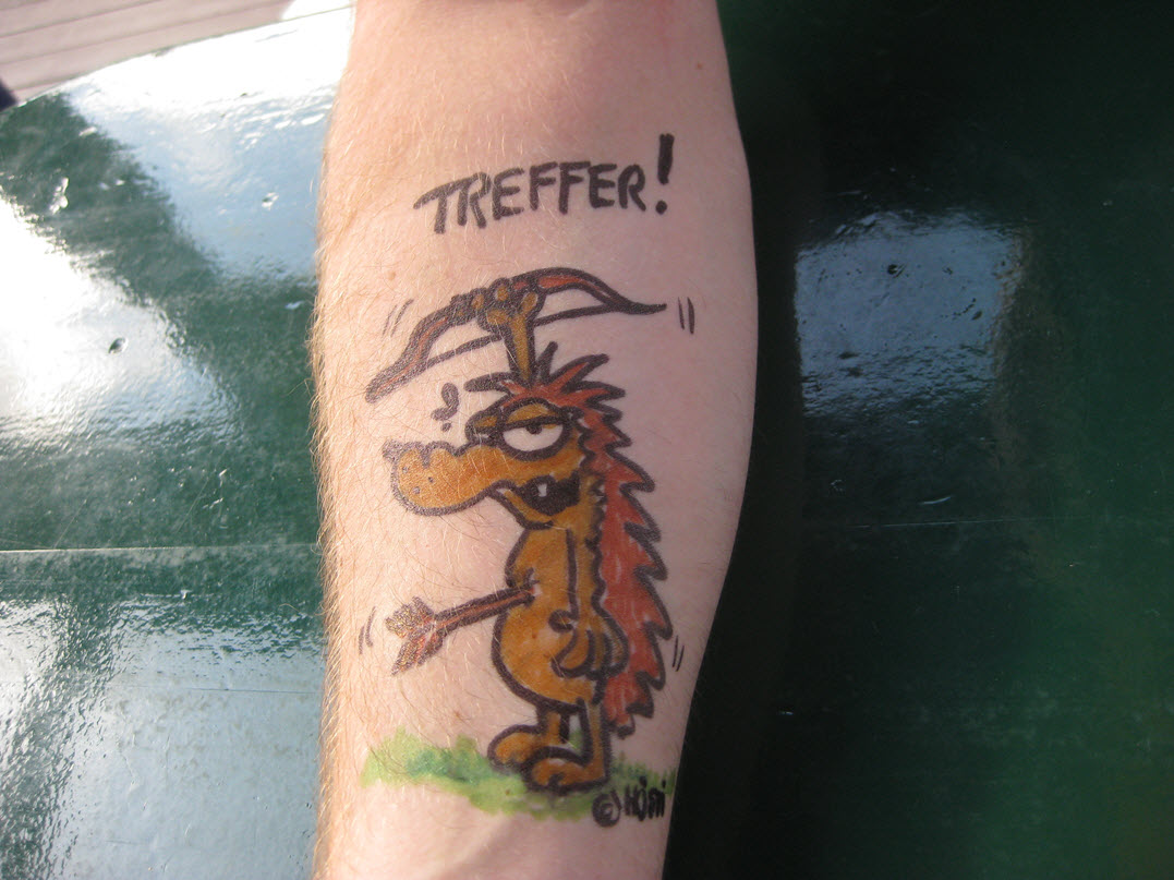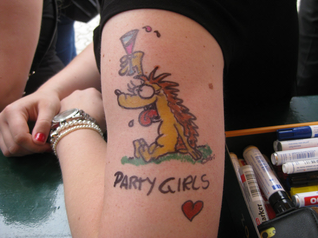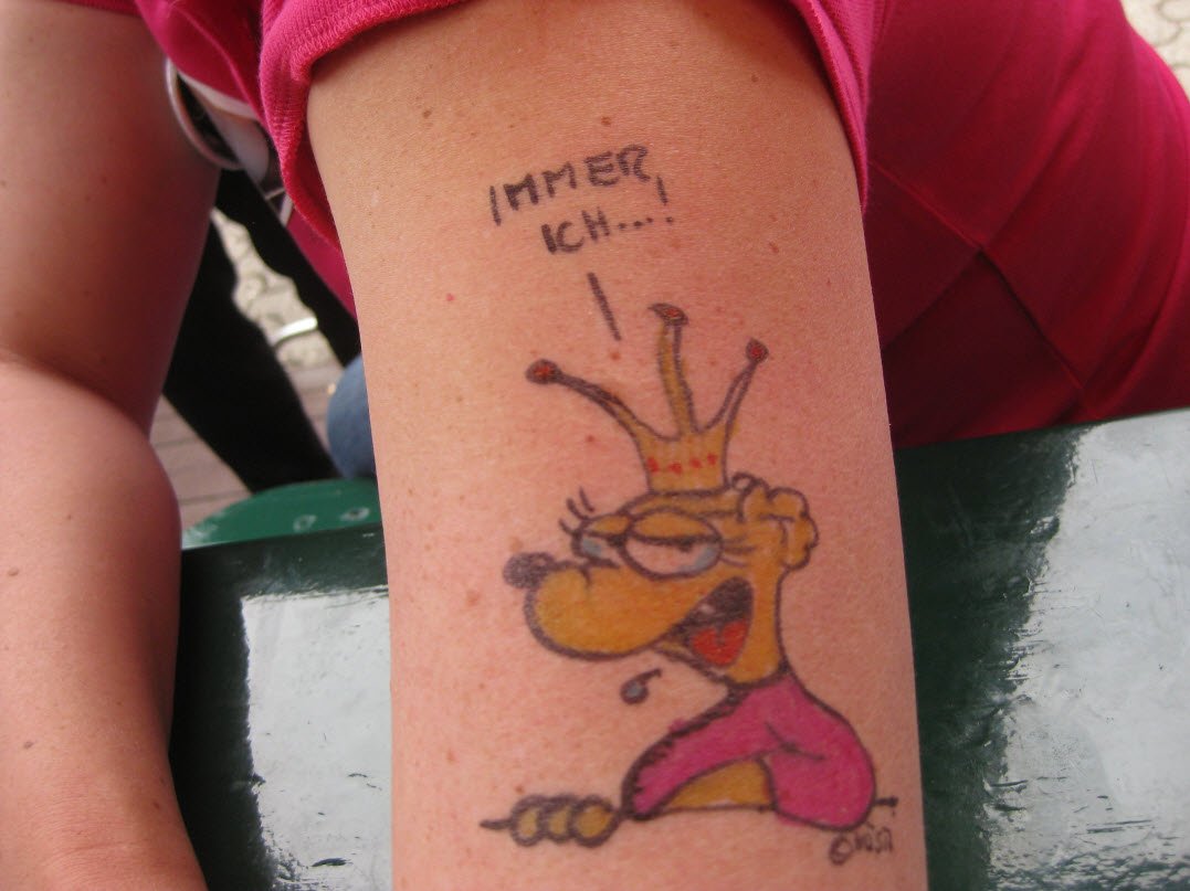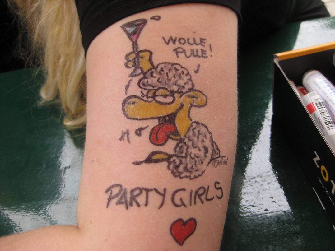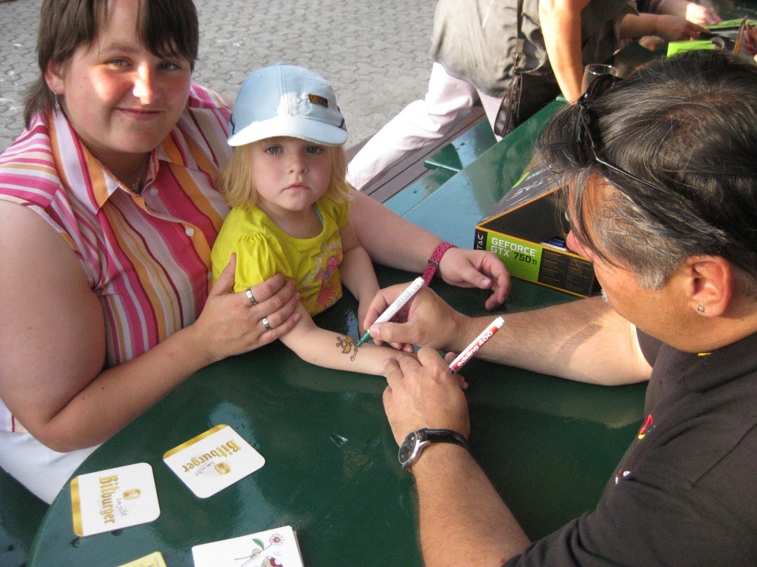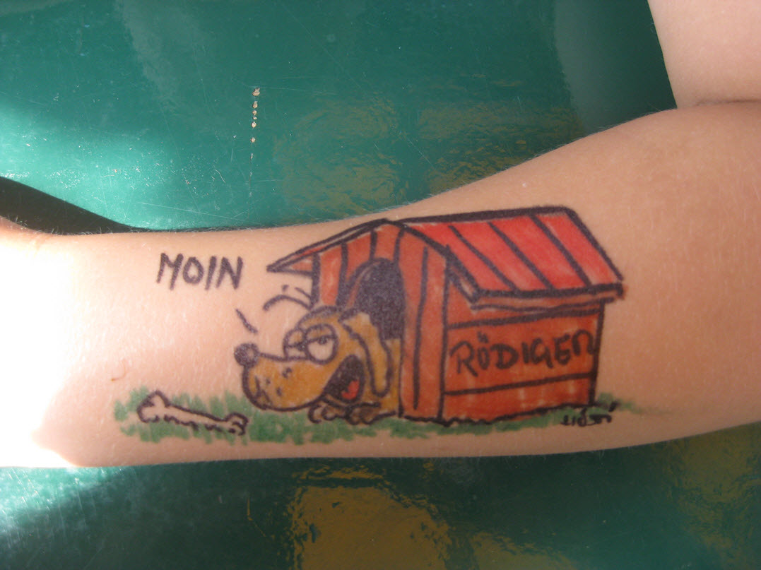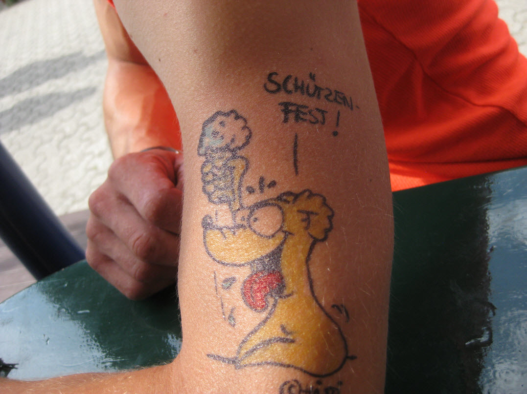 Jedes Jahr ist Hösti auf dem Esenser Schützenfest im “Alt Ostfriesland” bei der Familie Kanzler und zeichnet seine abwaschbaren Tattoos auf fast alle Körperteile.