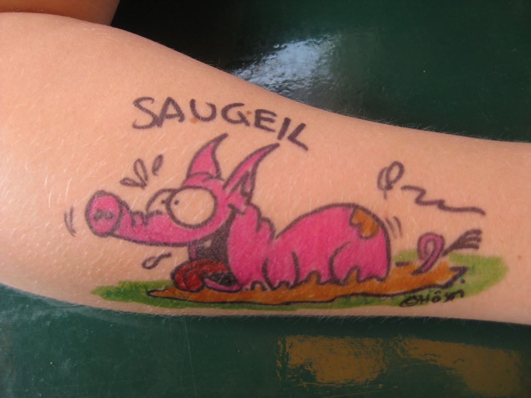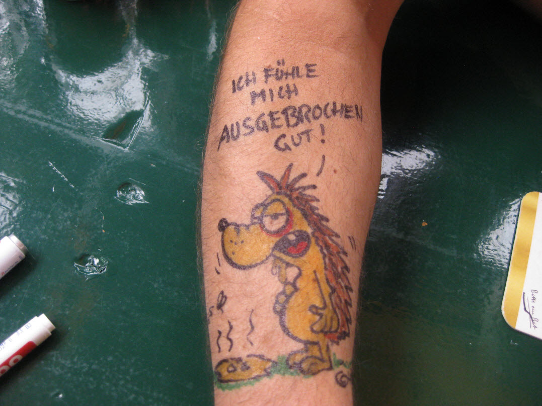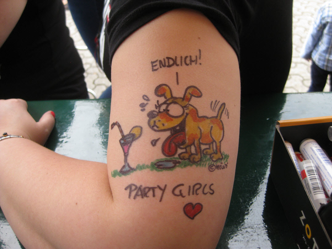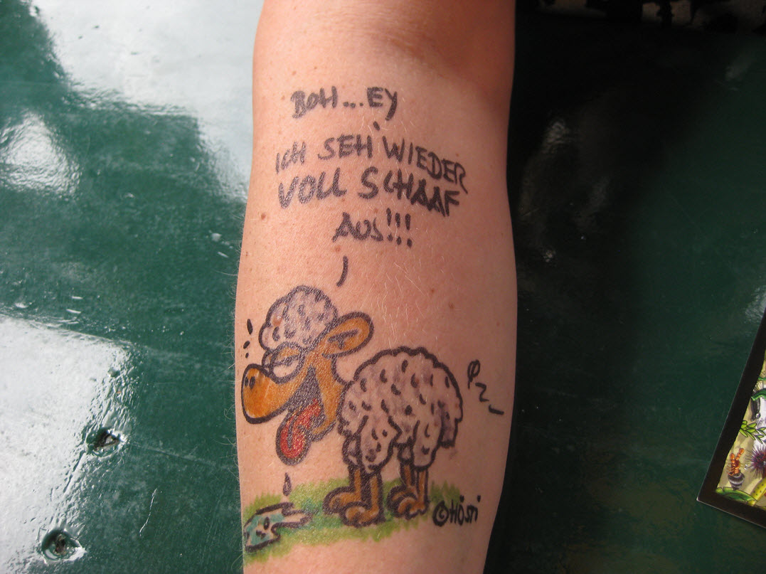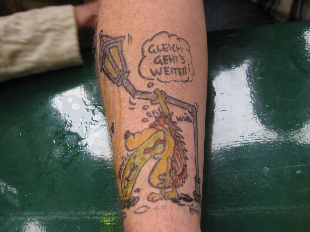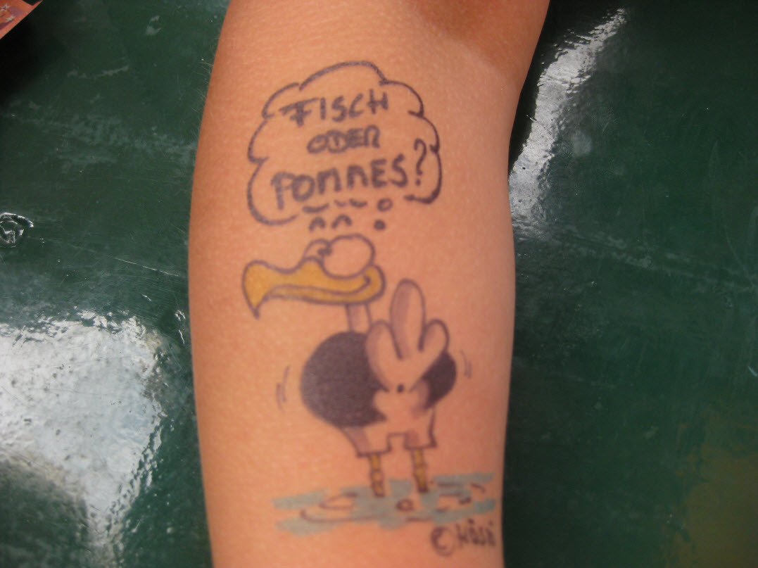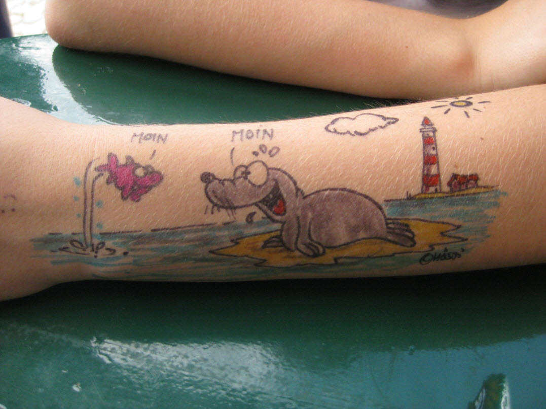 Jedes Jahr ist Hösti auf dem Esenser Schützenfest im “Alt Ostfriesland” bei der Familie Kanzler und zeichnet seine abwaschbaren Tattoos auf fast alle Körperteile.