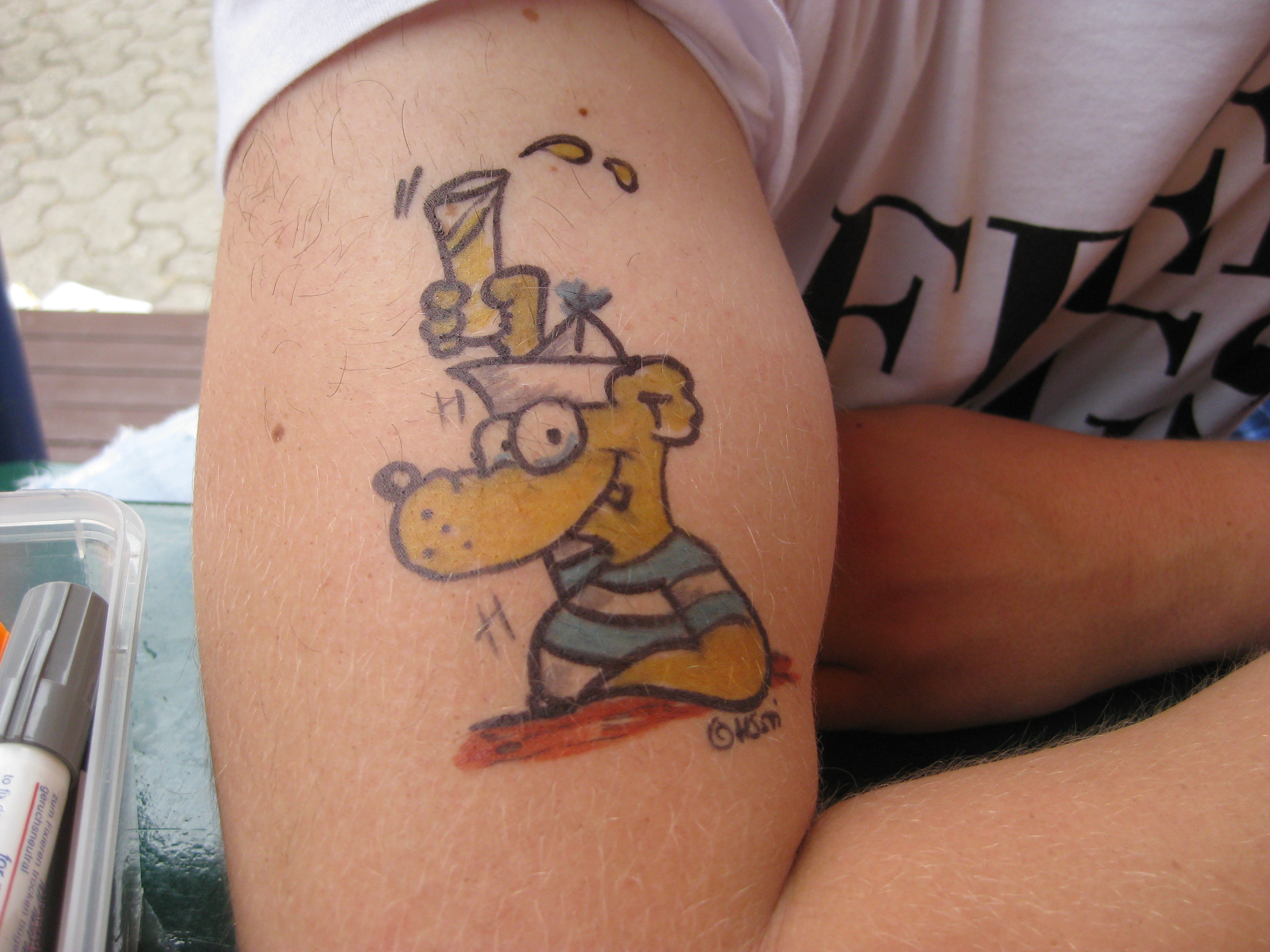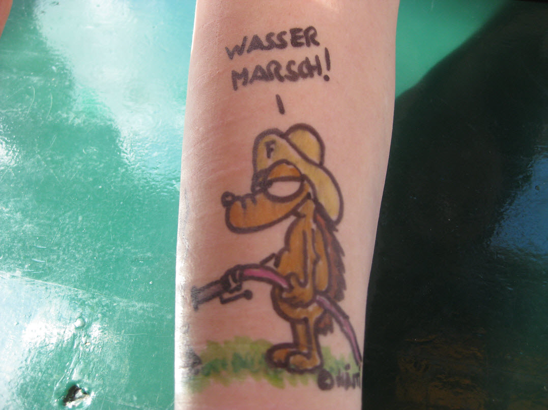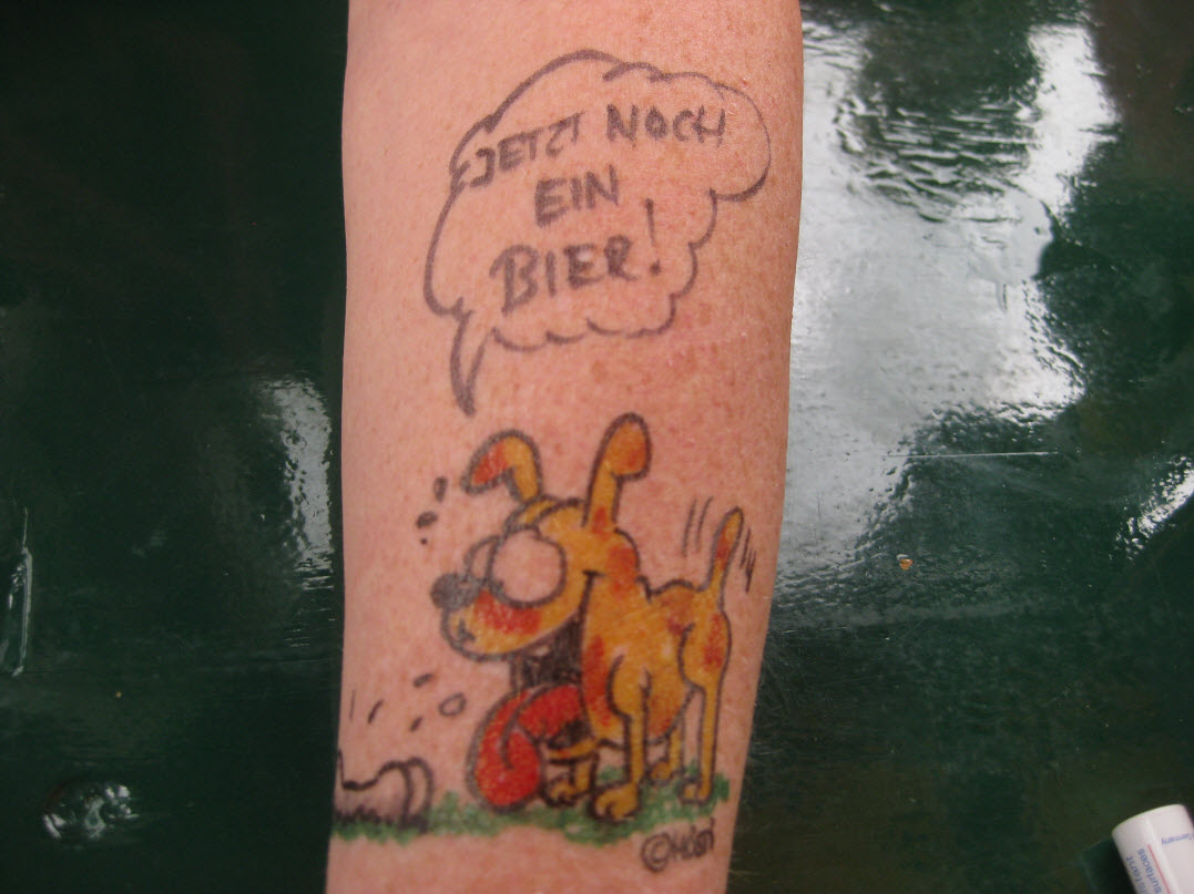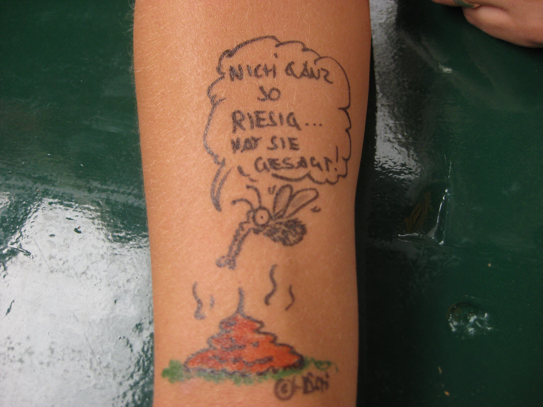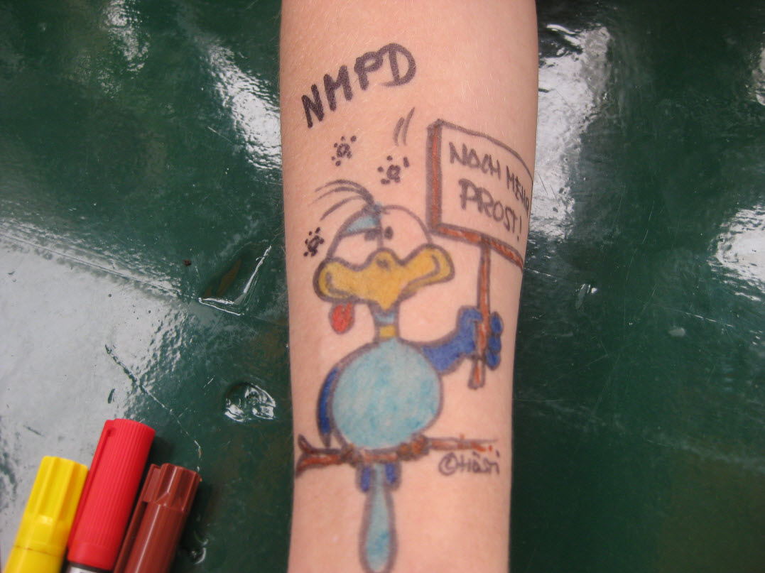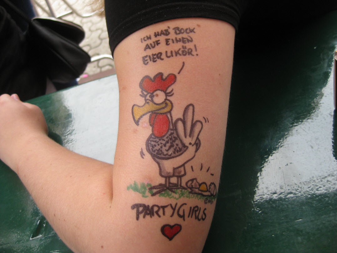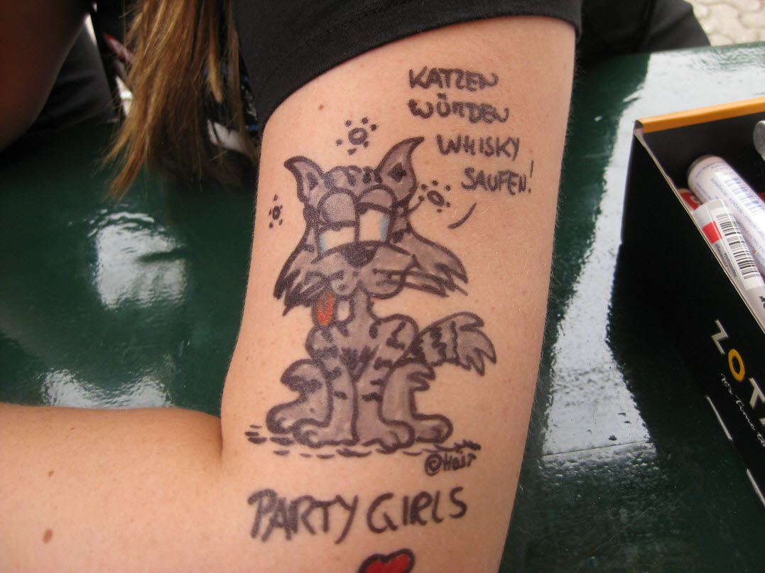 Jedes Jahr ist Hösti auf dem Esenser Schützenfest im “Alt Ostfriesland” bei der Familie Kanzler und zeichnet seine abwaschbaren Tattoos auf fast alle Körperteile.