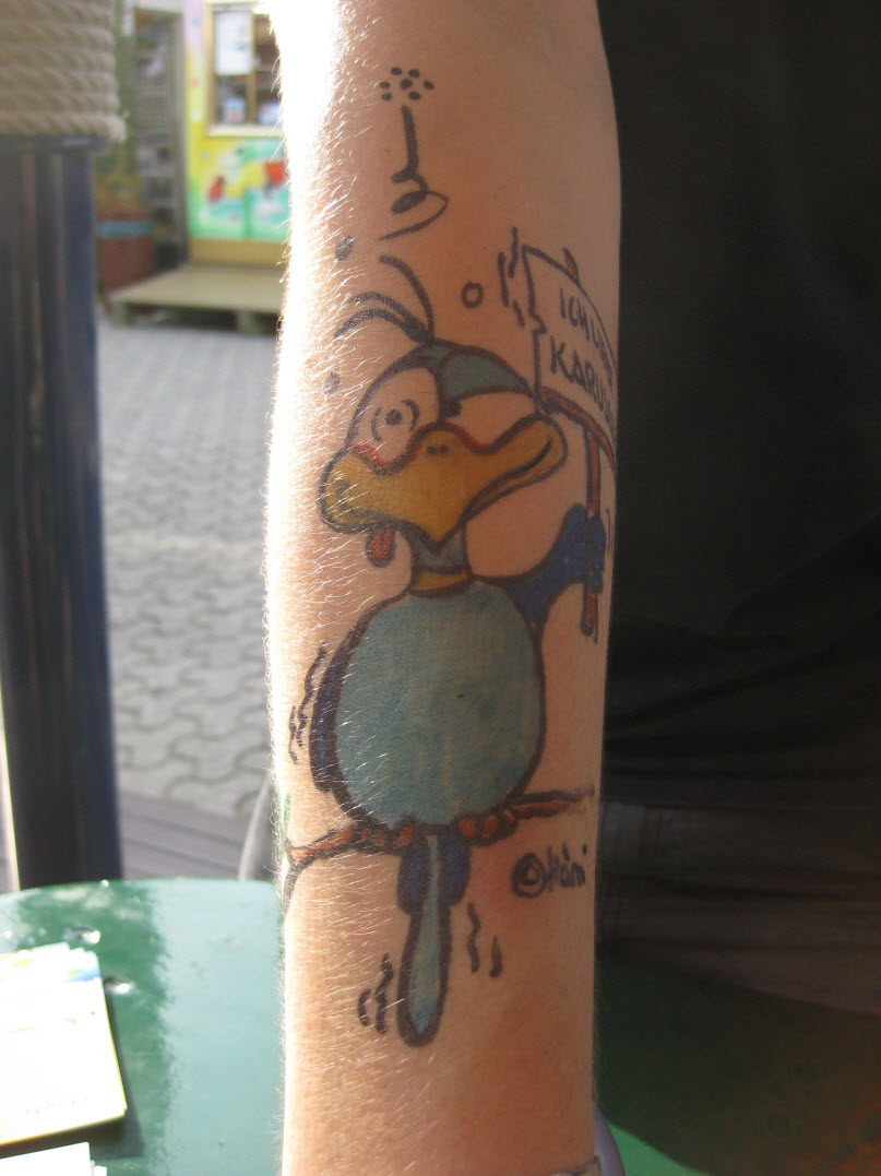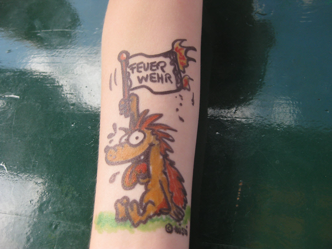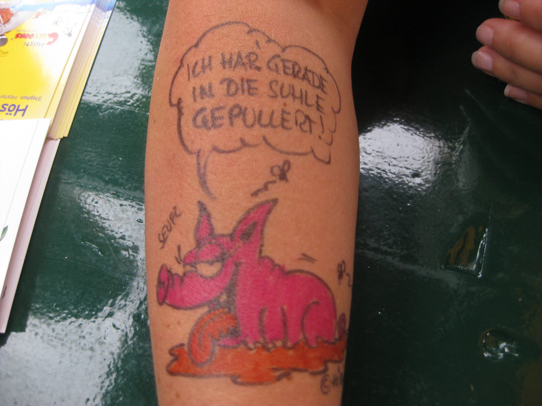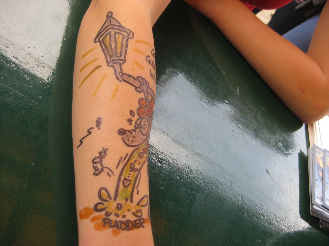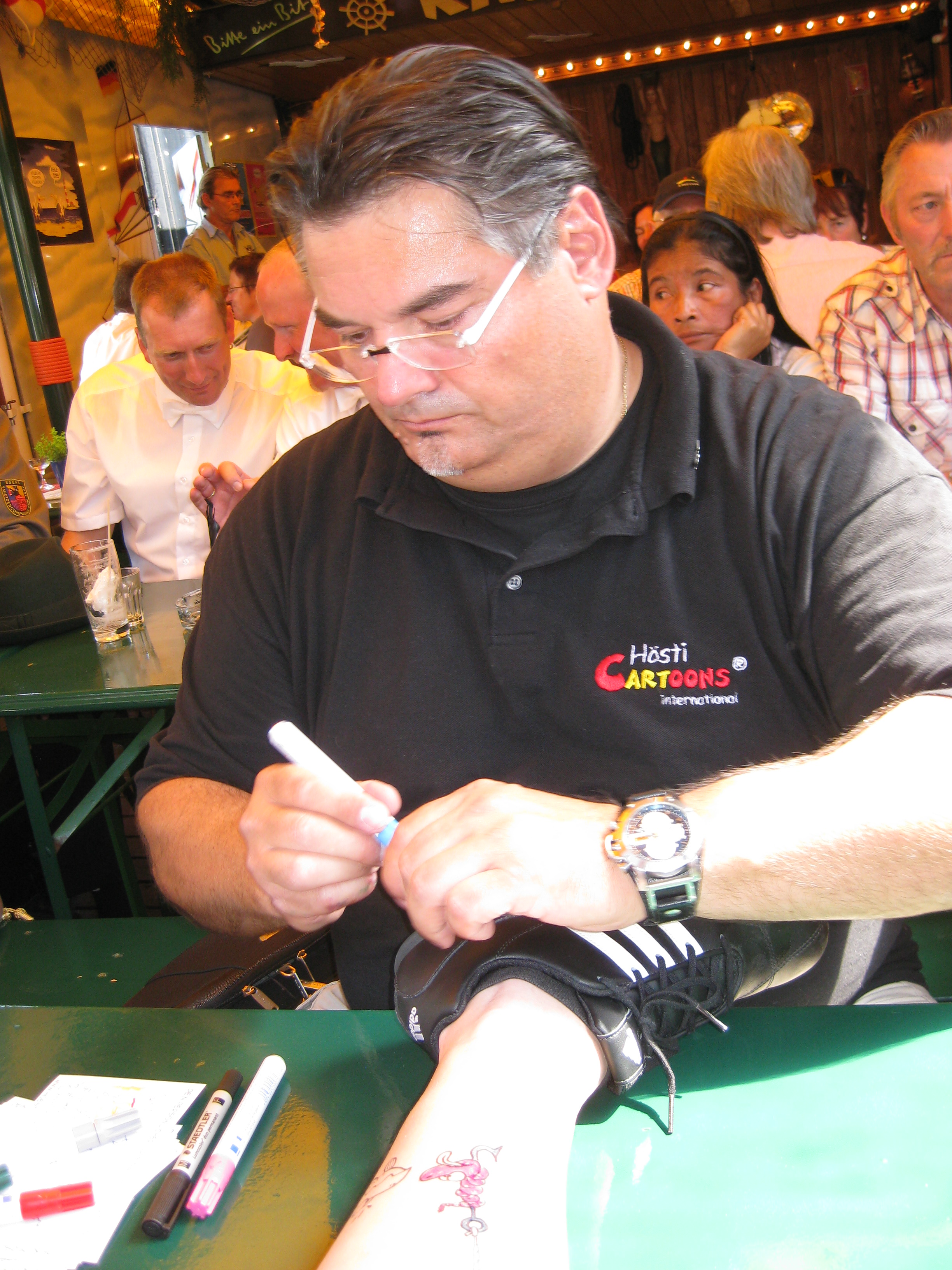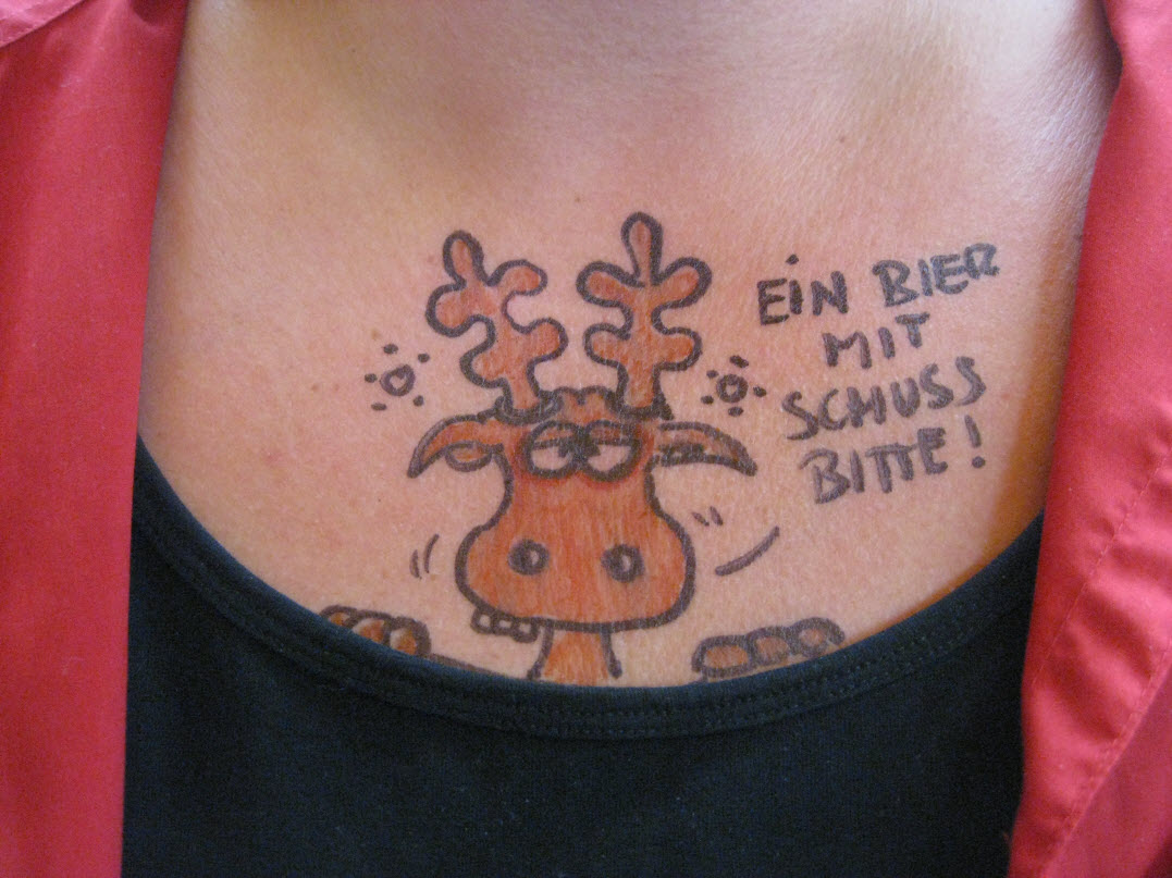 Jedes Jahr ist Hösti auf dem Esenser Schützenfest im “Alt Ostfriesland” bei der Familie Kanzler und zeichnet seine abwaschbaren Tattoos auf fast alle Körperteile.