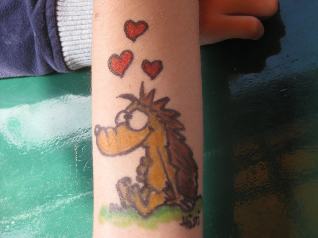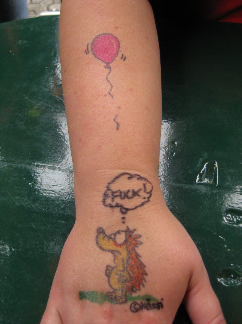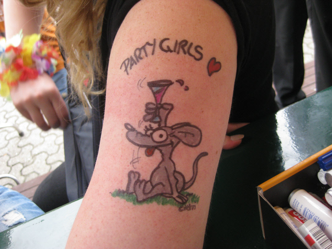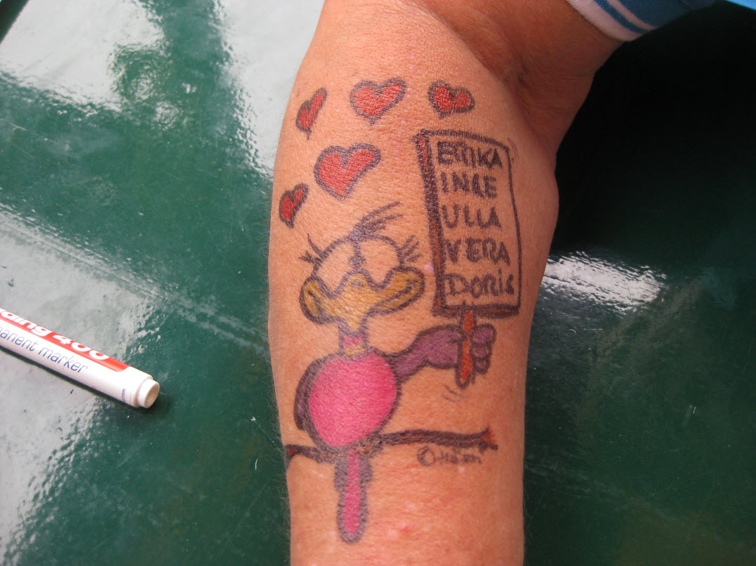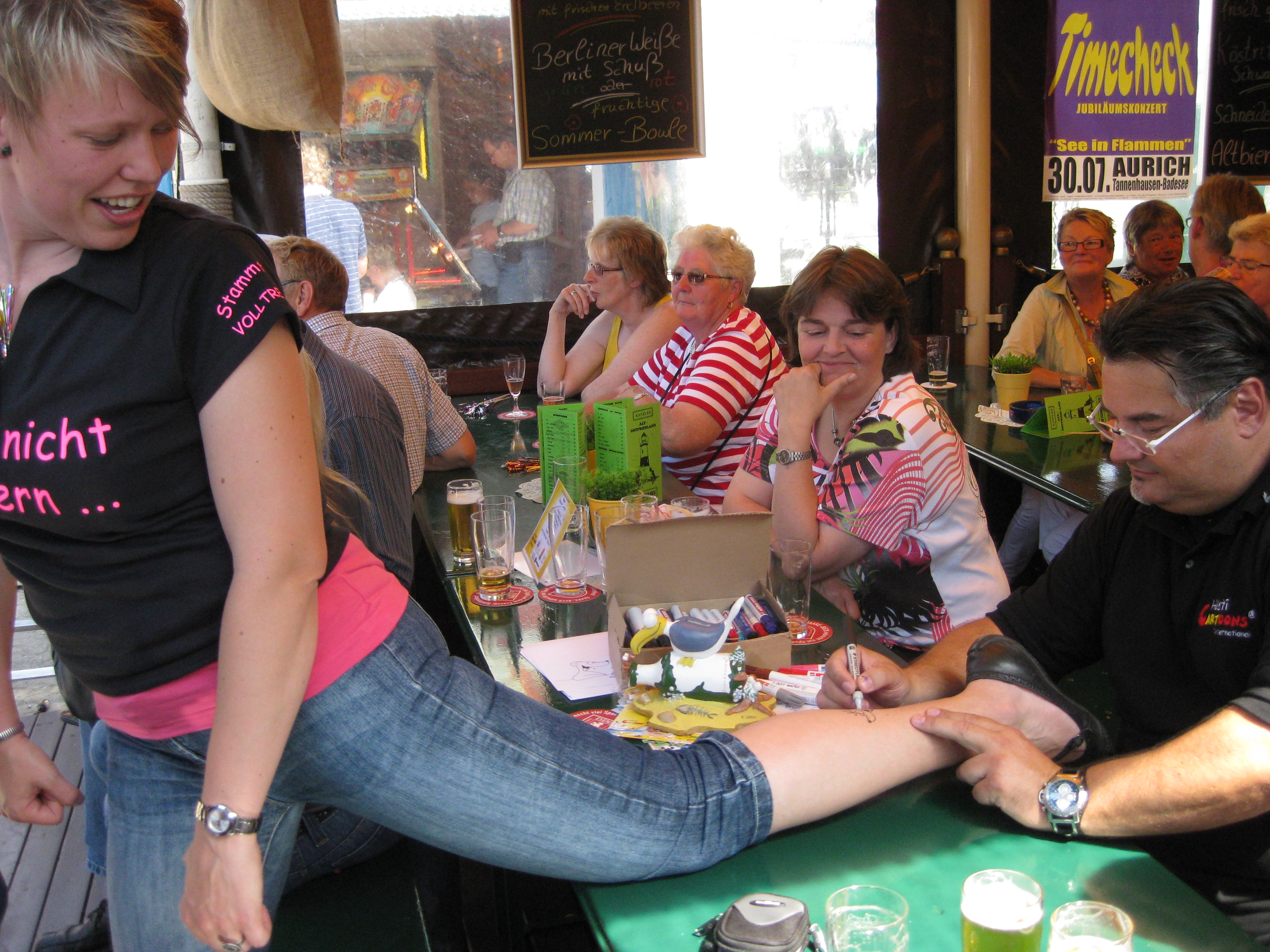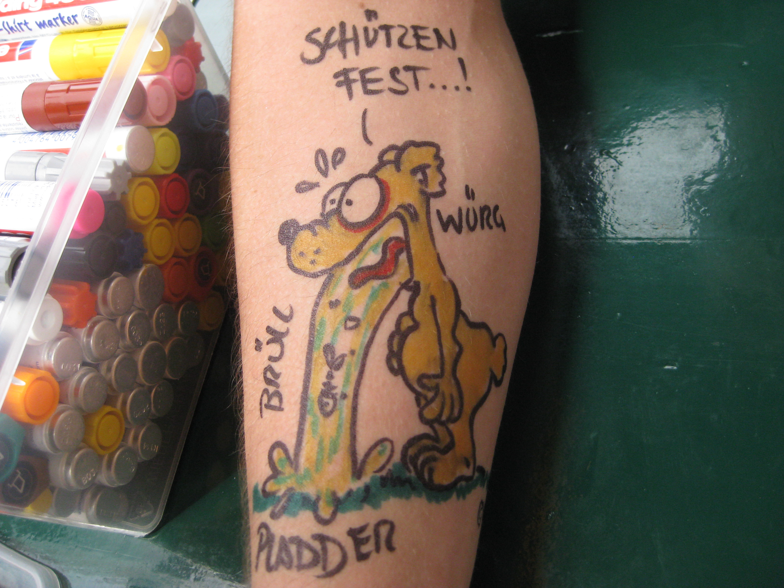 Jedes Jahr ist Hösti auf dem Esenser Schützenfest im “Alt Ostfriesland” bei der Familie Kanzler und zeichnet seine abwaschbaren Tattoos auf fast alle Körperteile.