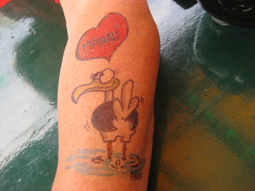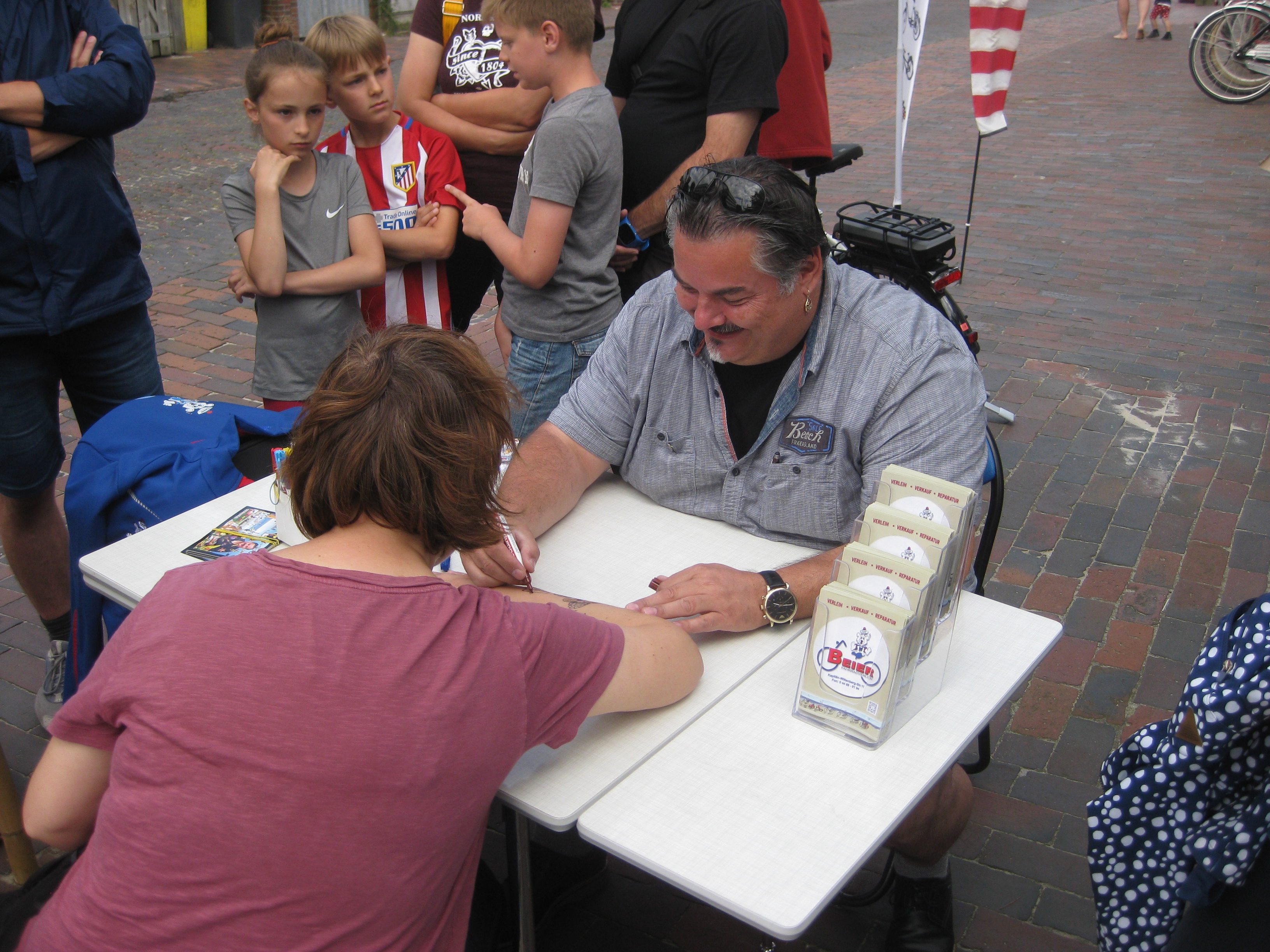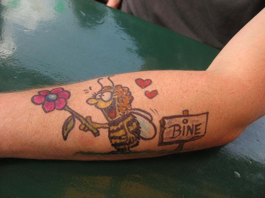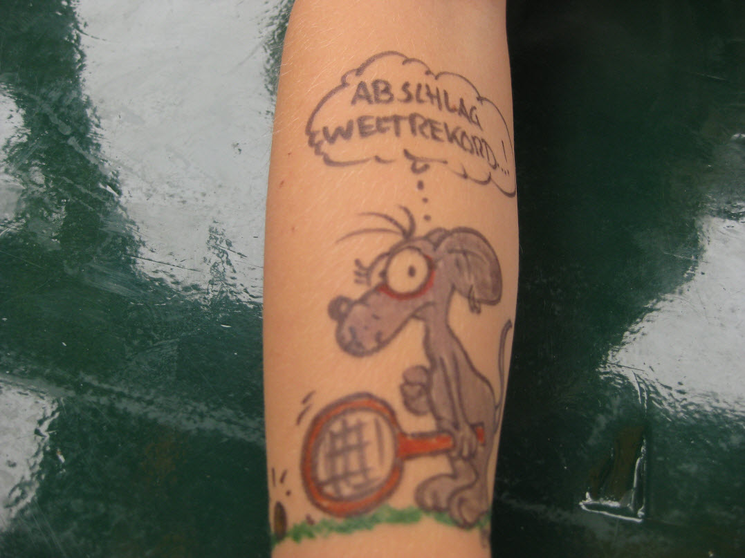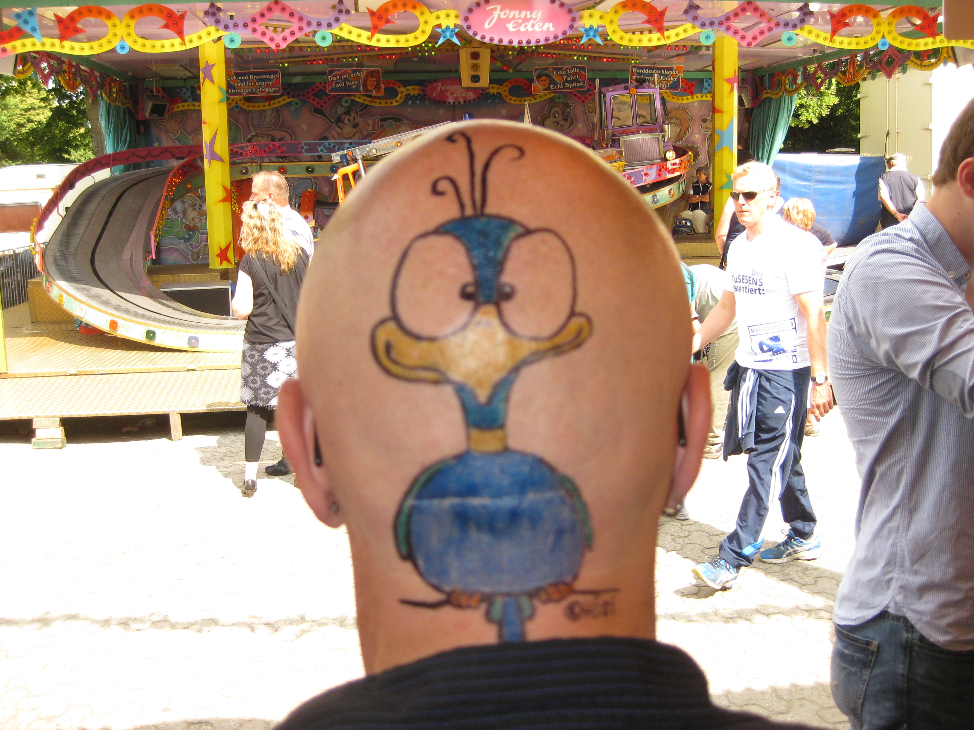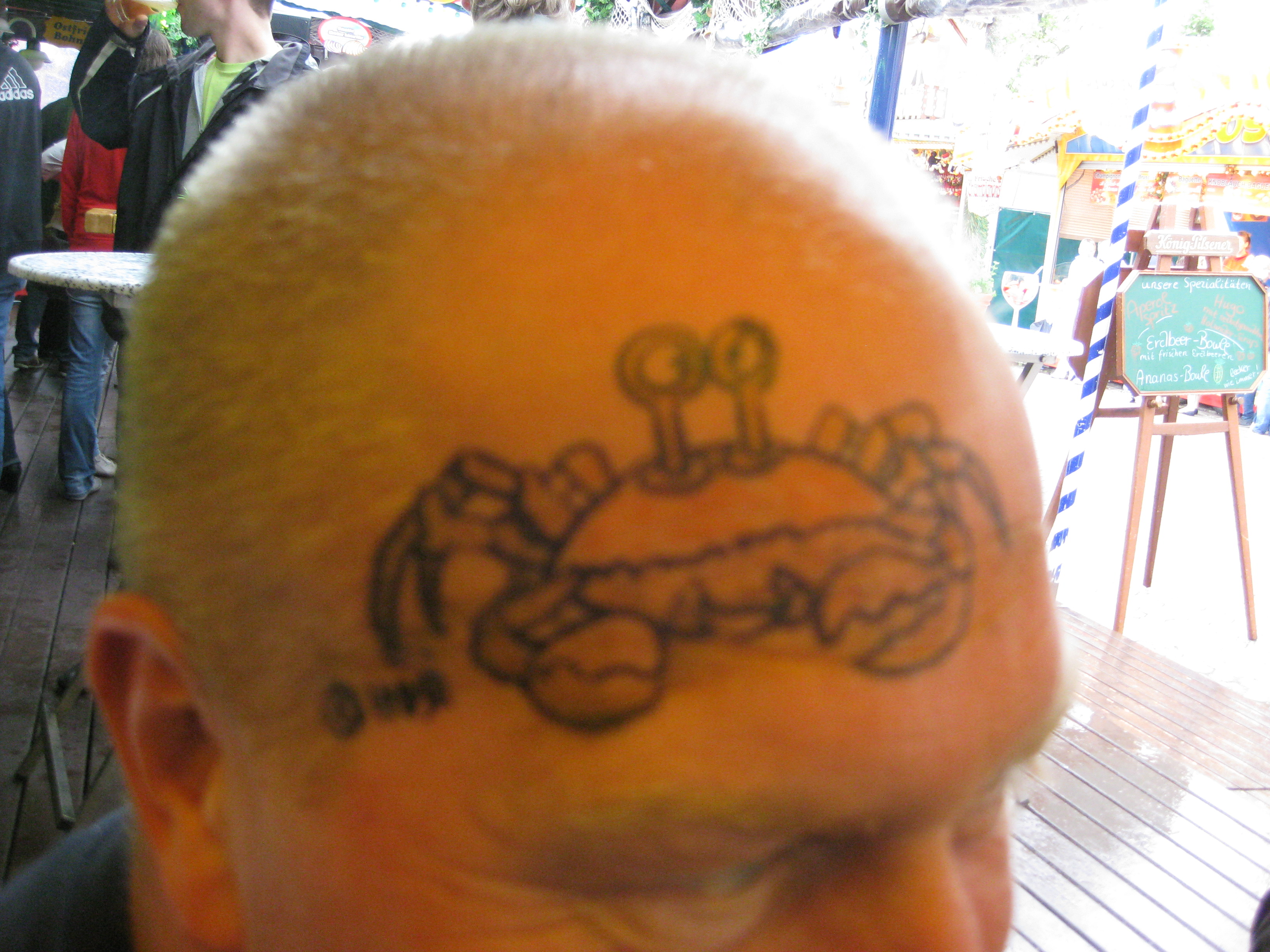 Jedes Jahr ist Hösti auf dem Esenser Schützenfest im “Alt Ostfriesland” bei der Familie Kanzler und zeichnet seine abwaschbaren Tattoos auf fast alle Körperteile.