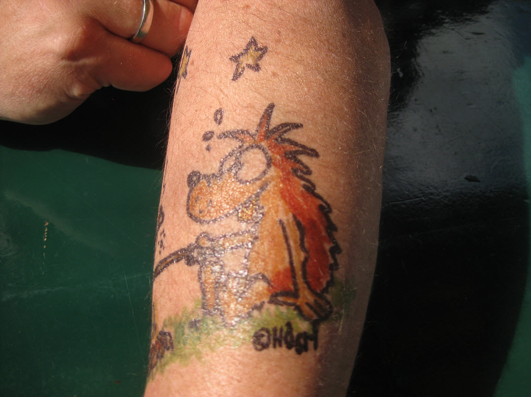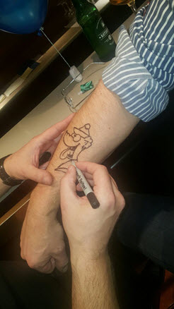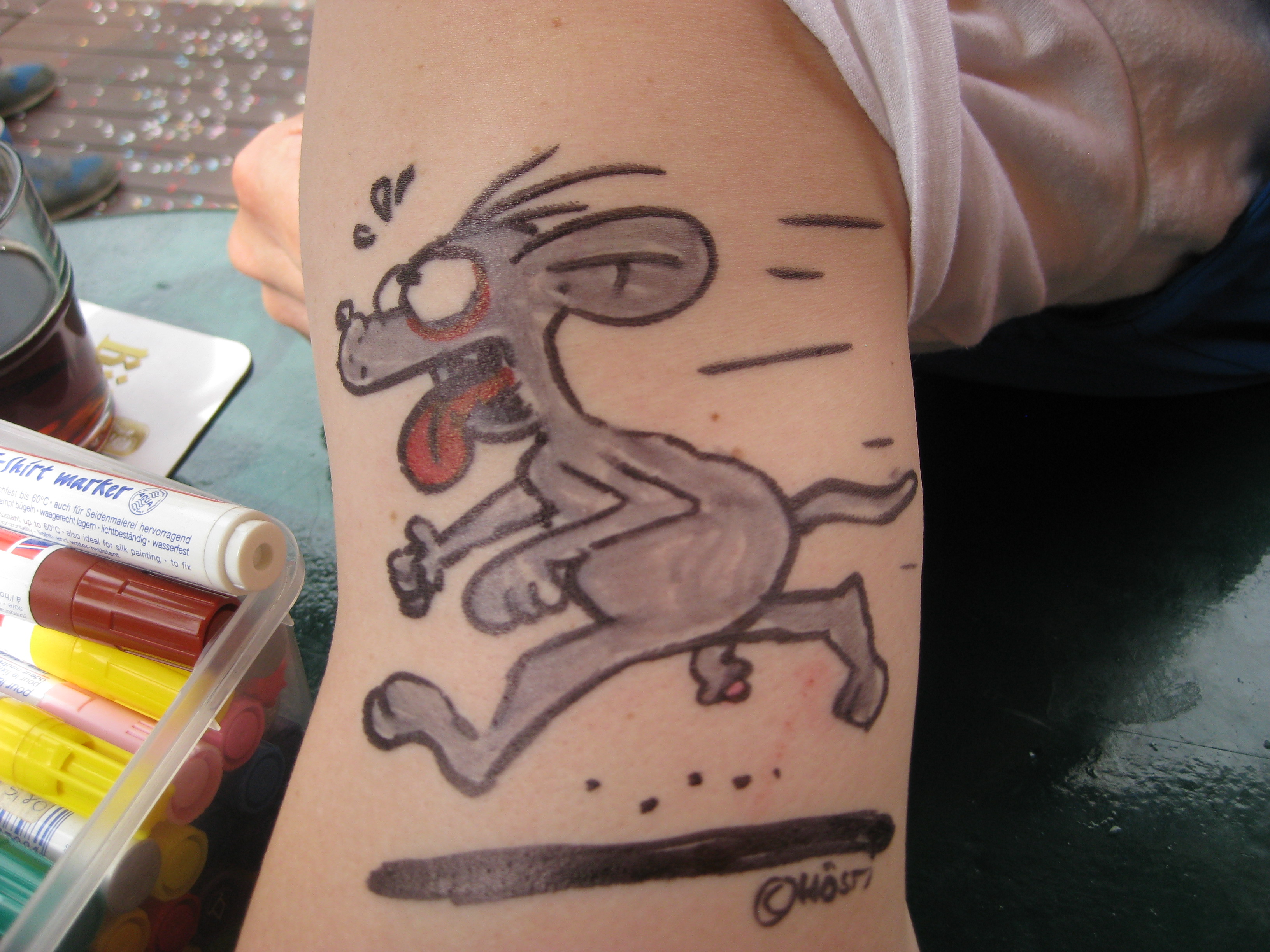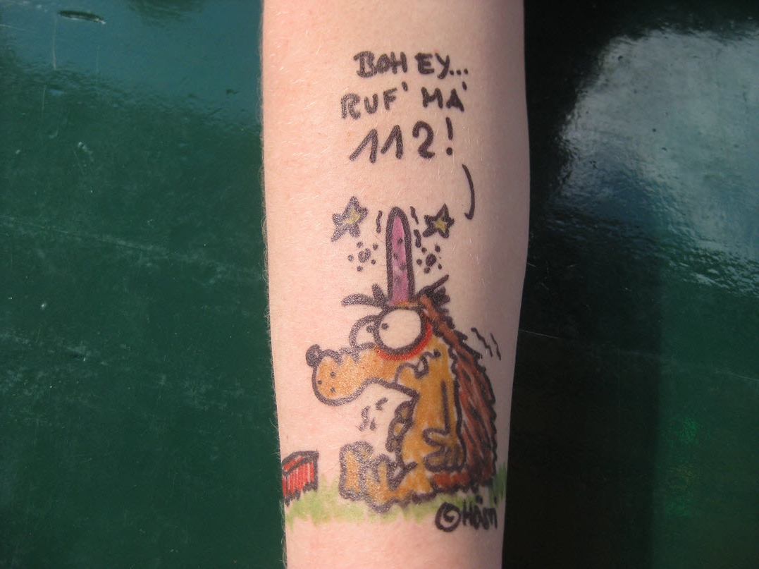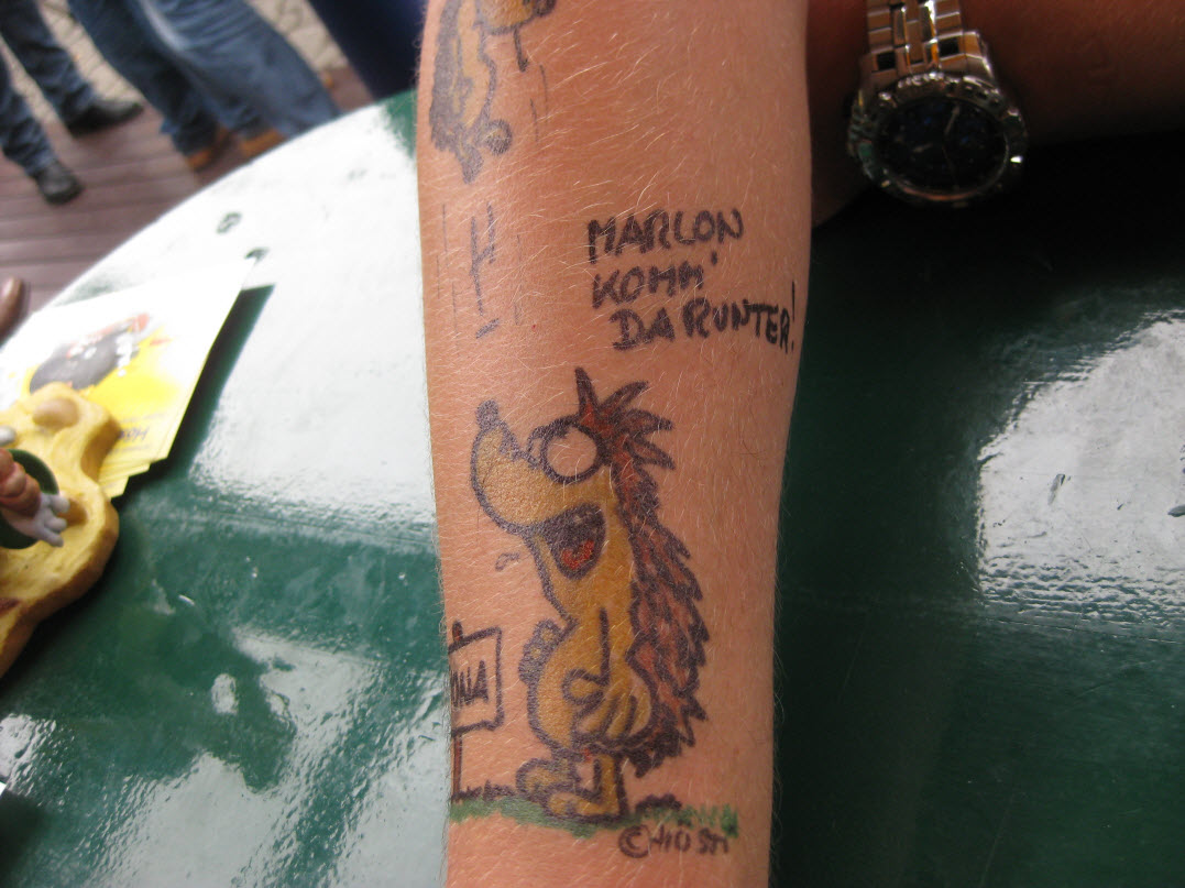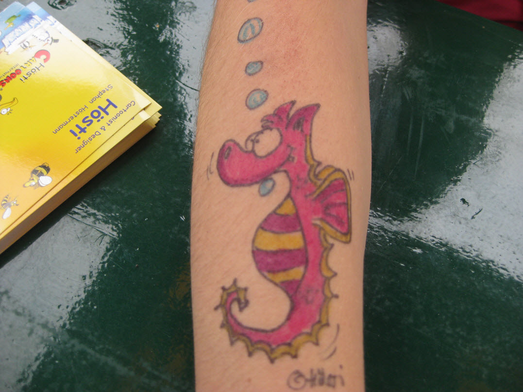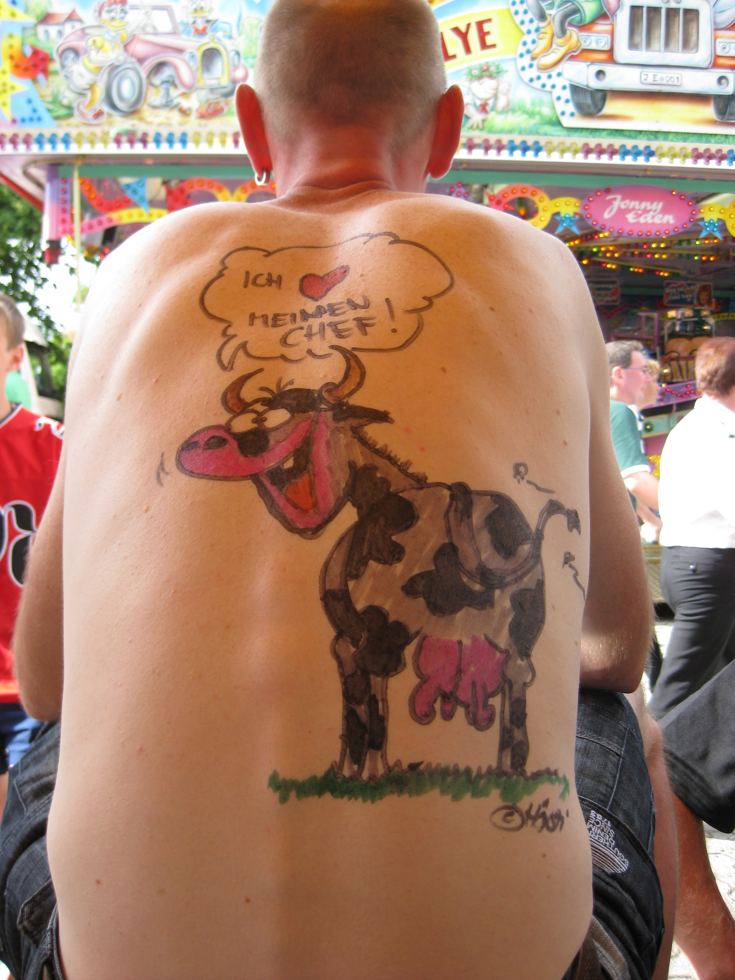 Jedes Jahr ist Hösti auf dem Esenser Schützenfest im “Alt Ostfriesland” bei der Familie Kanzler und zeichnet seine abwaschbaren Tattoos auf fast alle Körperteile.