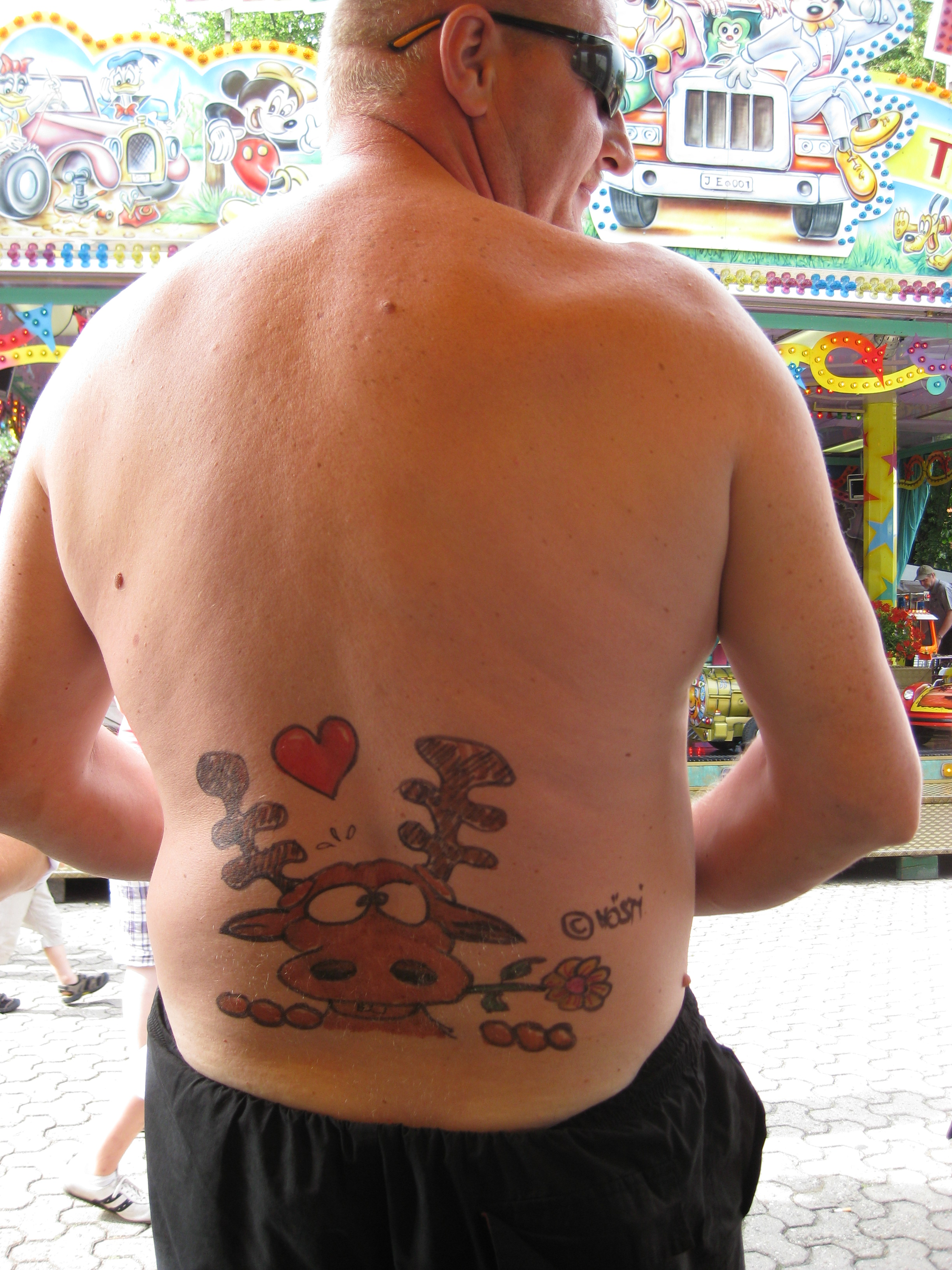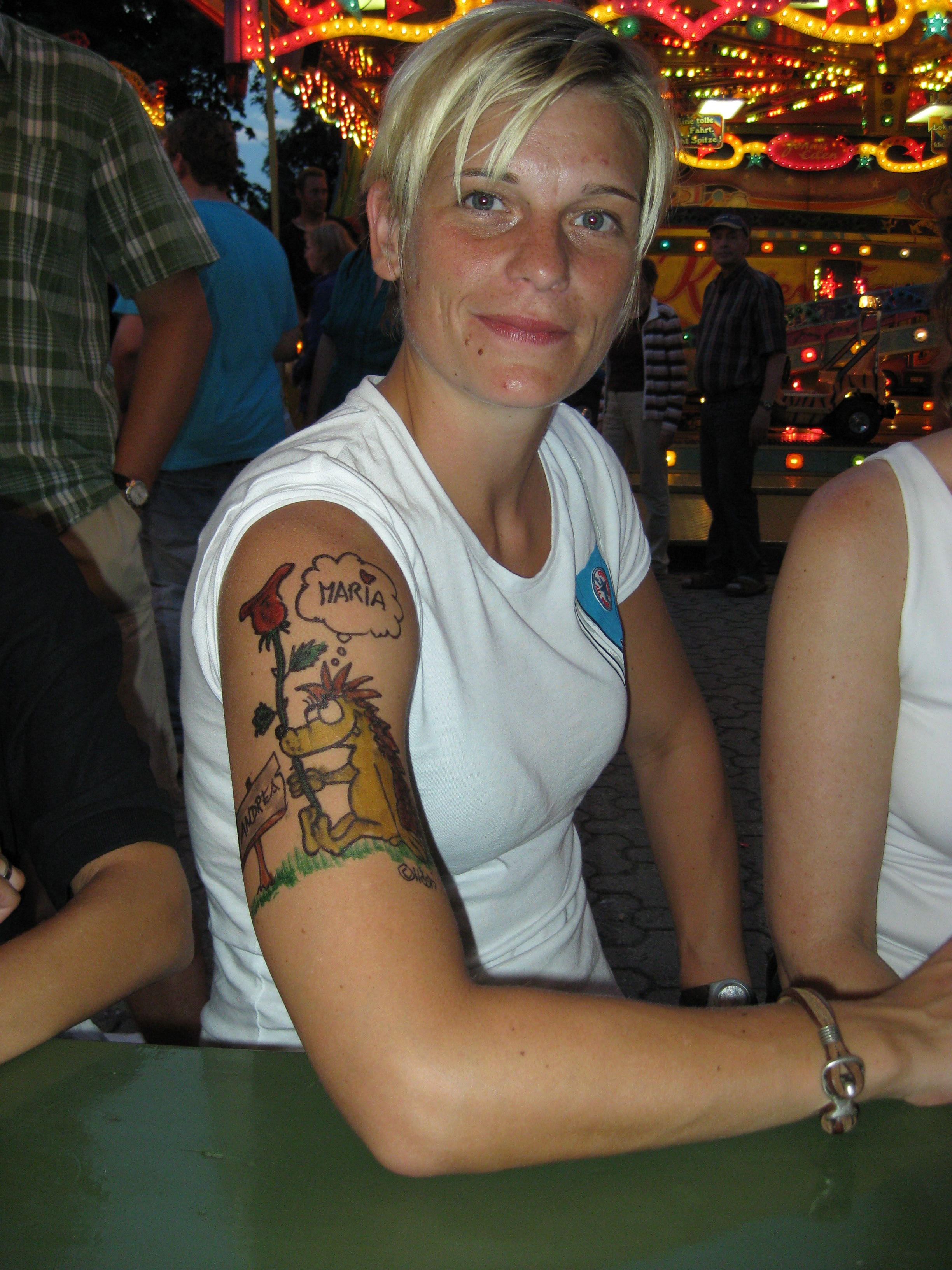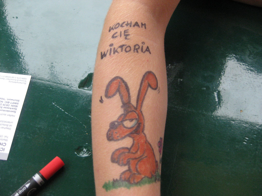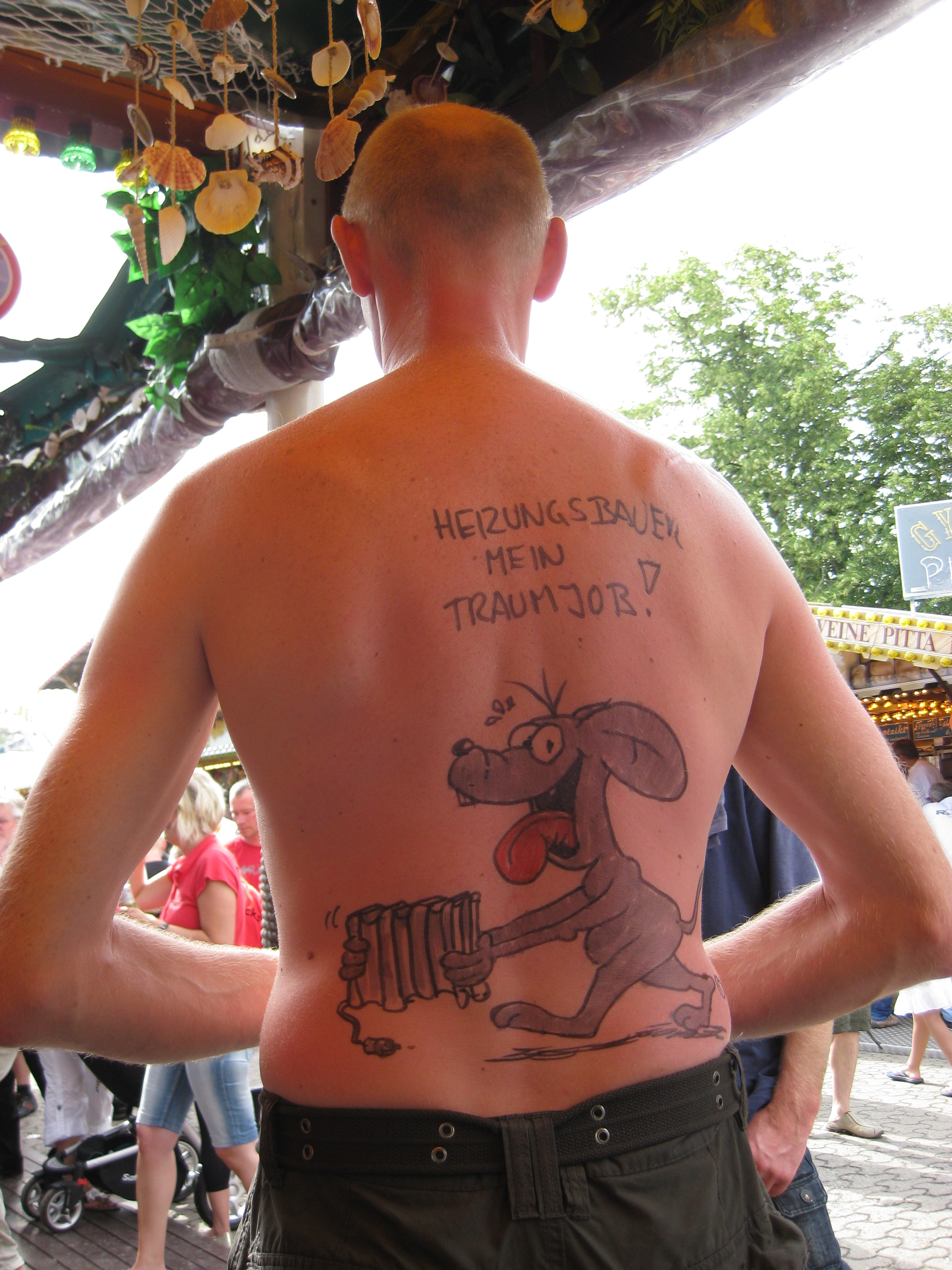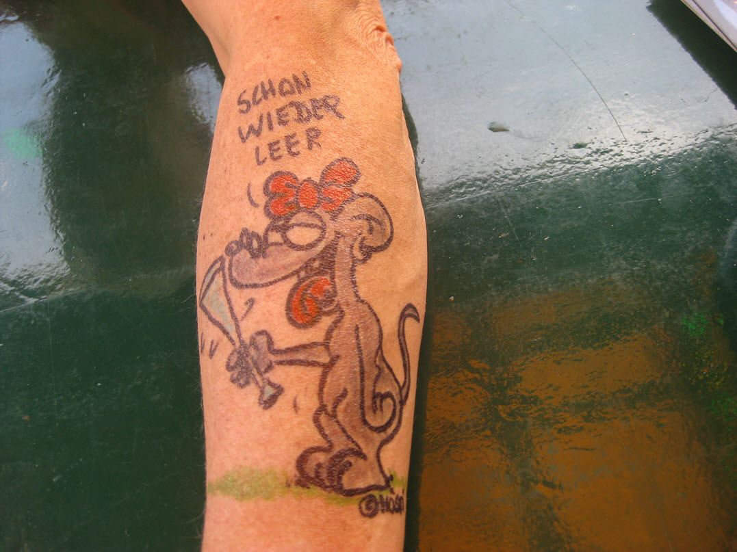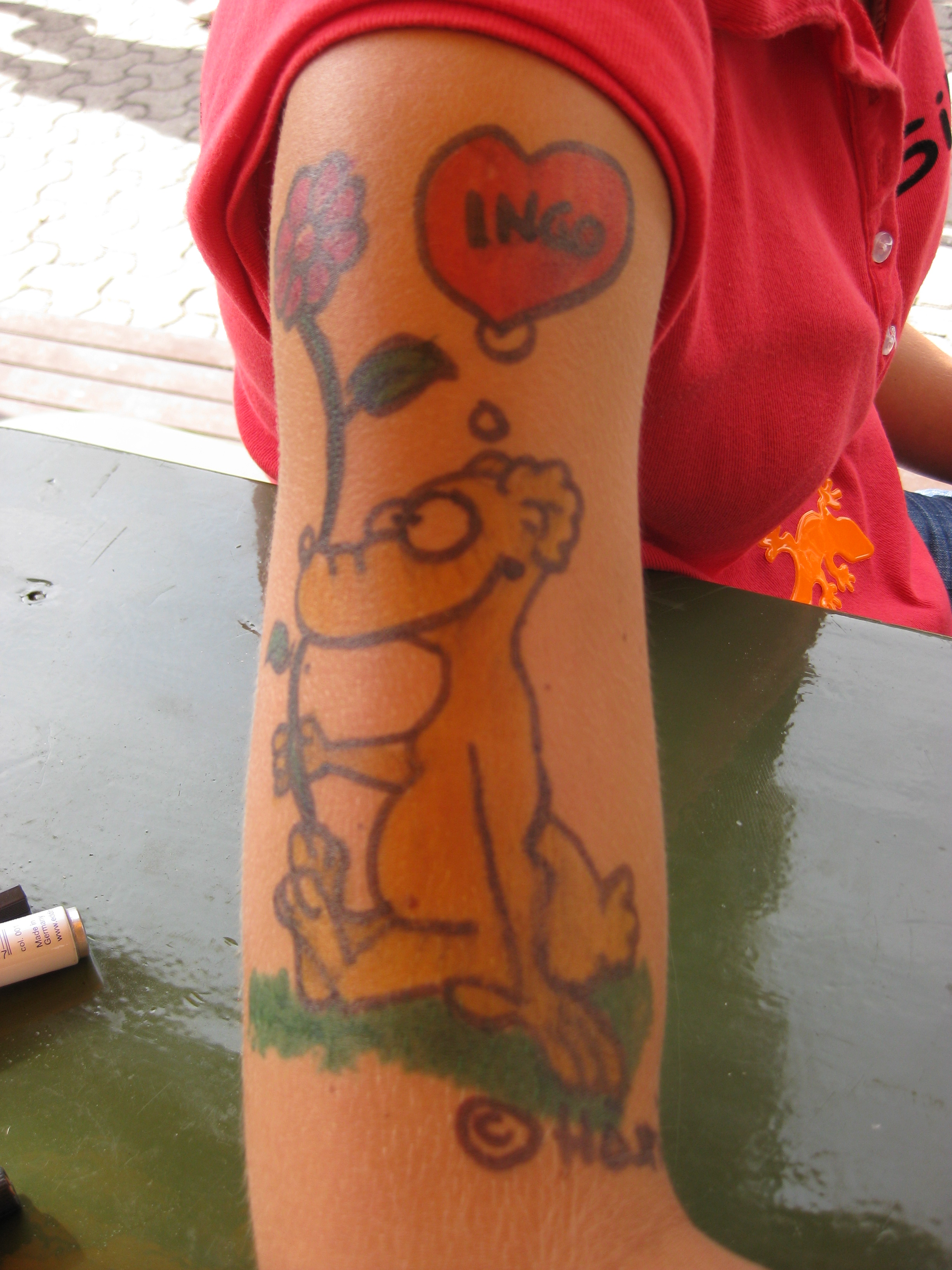 Jedes Jahr ist Hösti auf dem Esenser Schützenfest im “Alt Ostfriesland” bei der Familie Kanzler und zeichnet seine abwaschbaren Tattoos auf fast alle Körperteile.