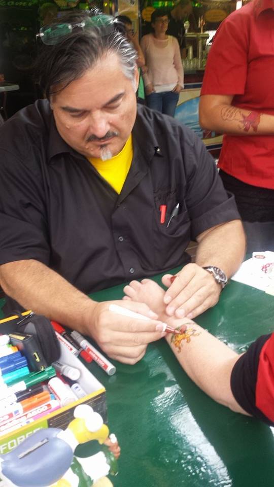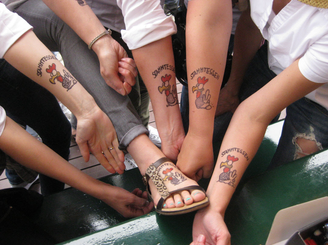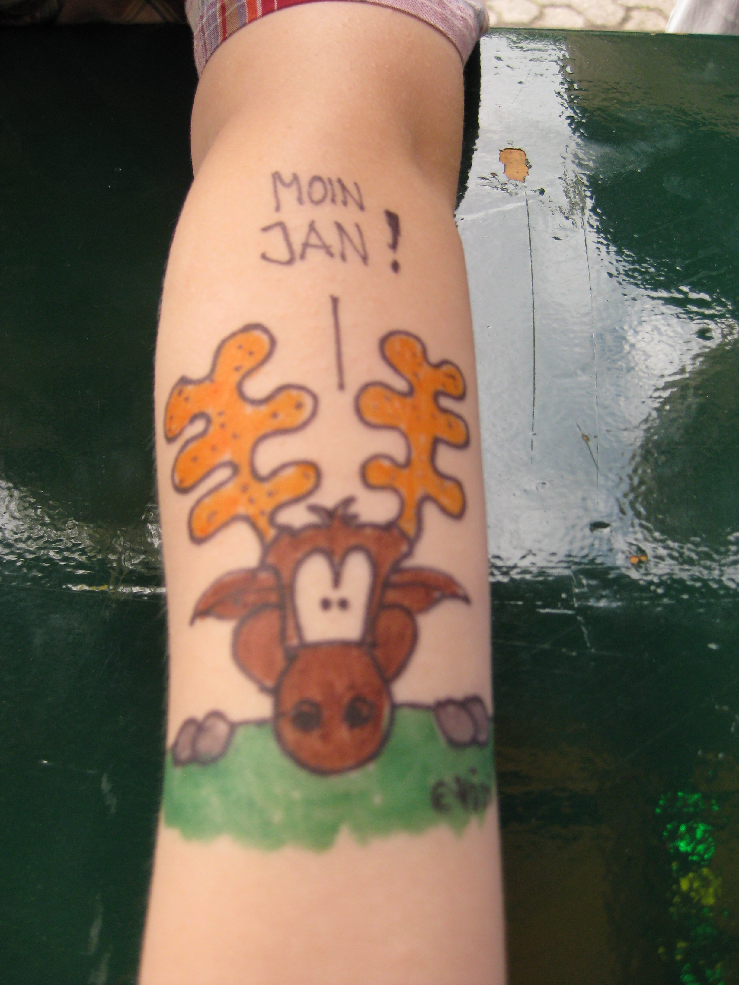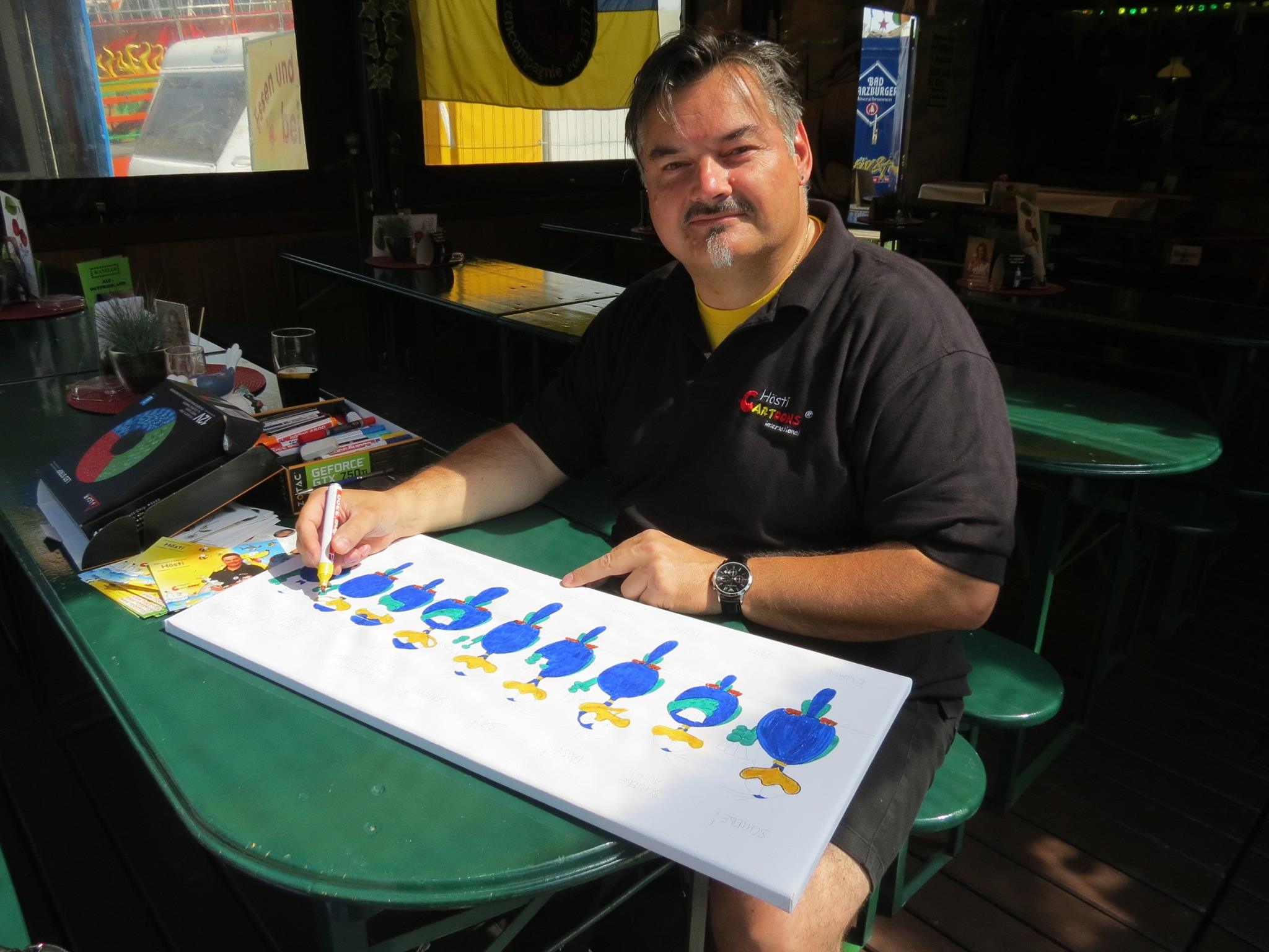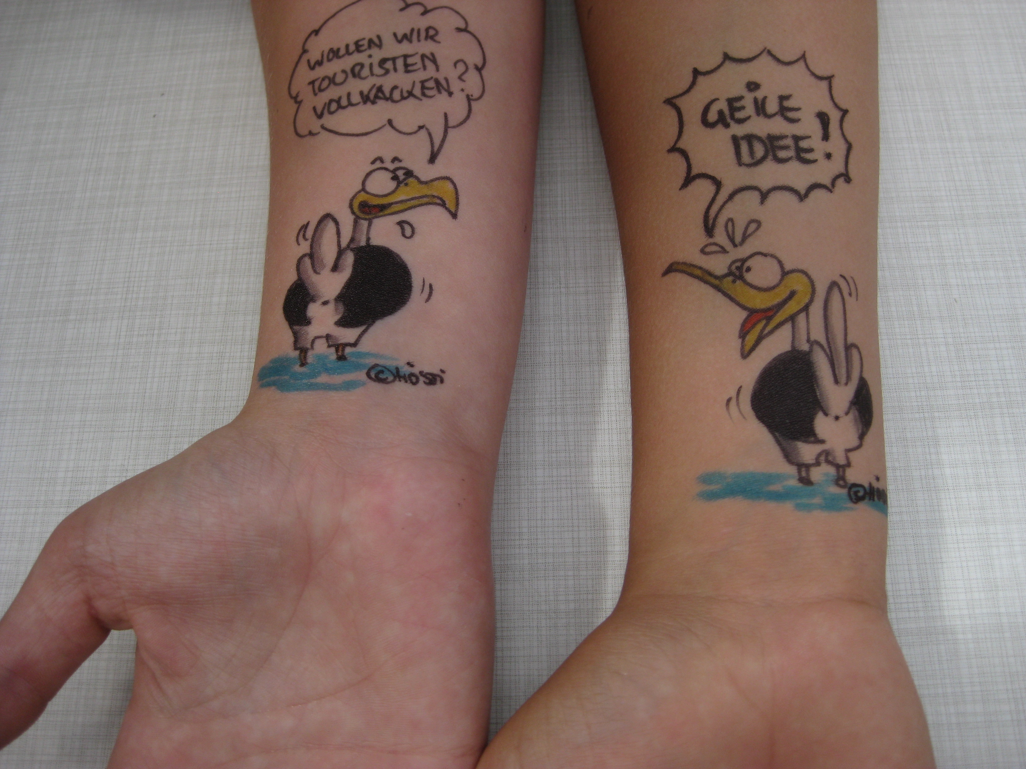 Jedes Jahr ist Hösti auf dem Esenser Schützenfest im “Alt Ostfriesland” bei der Familie Kanzler und zeichnet seine abwaschbaren Tattoos auf fast alle Körperteile.