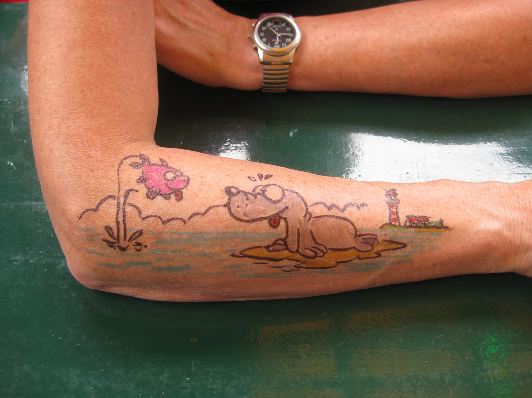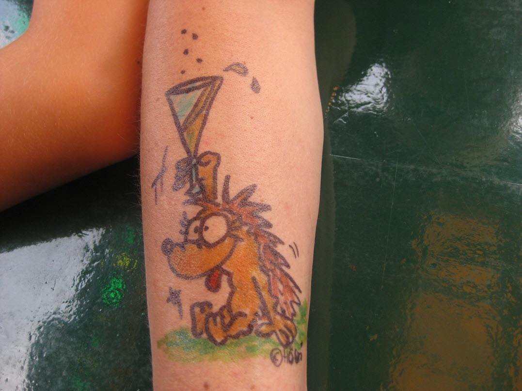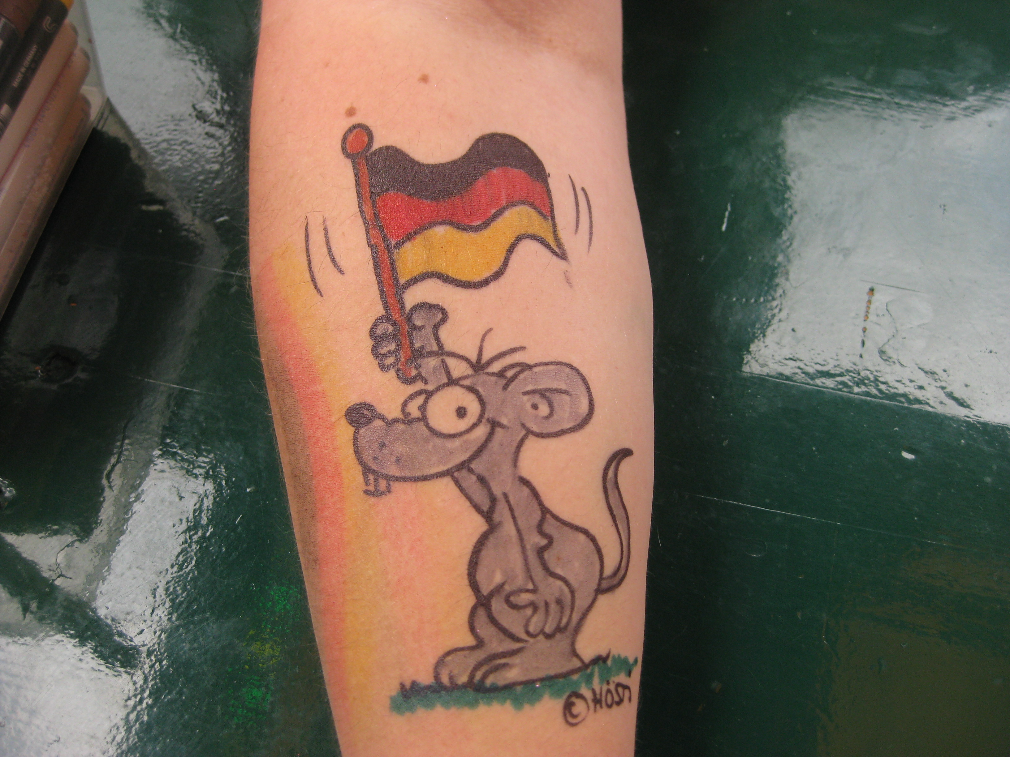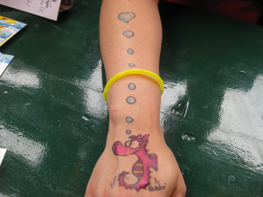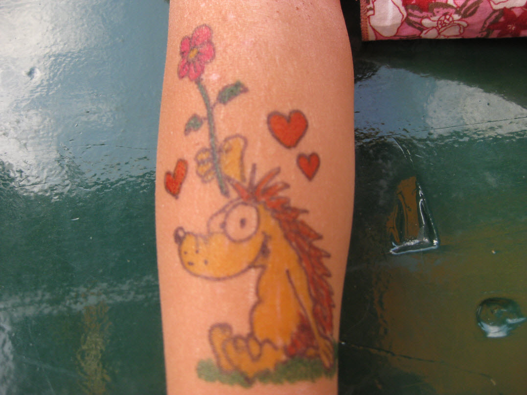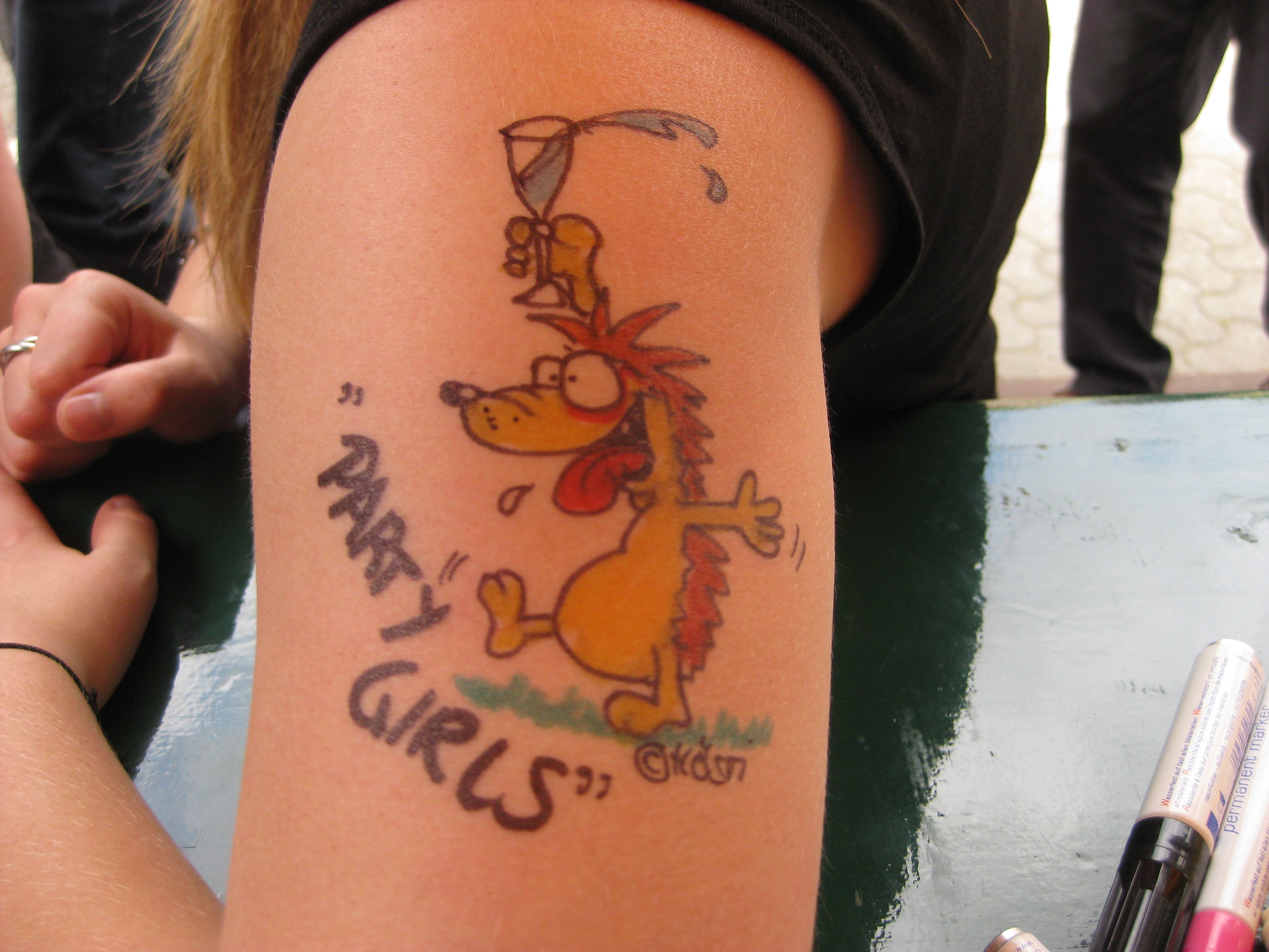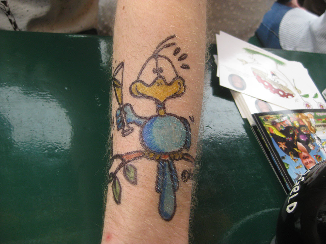 Jedes Jahr ist Hösti auf dem Esenser Schützenfest im “Alt Ostfriesland” bei der Familie Kanzler und zeichnet seine abwaschbaren Tattoos auf fast alle Körperteile.