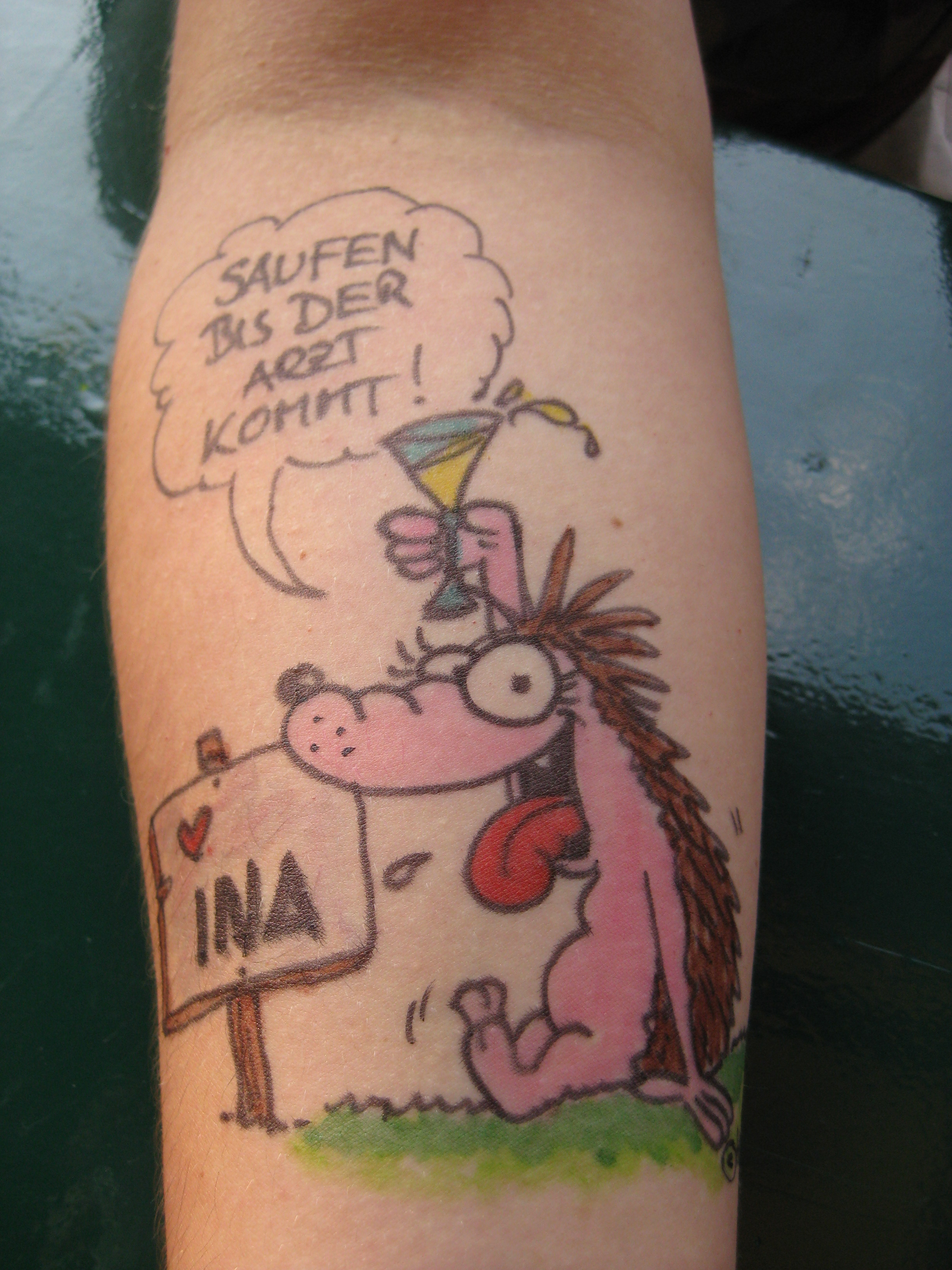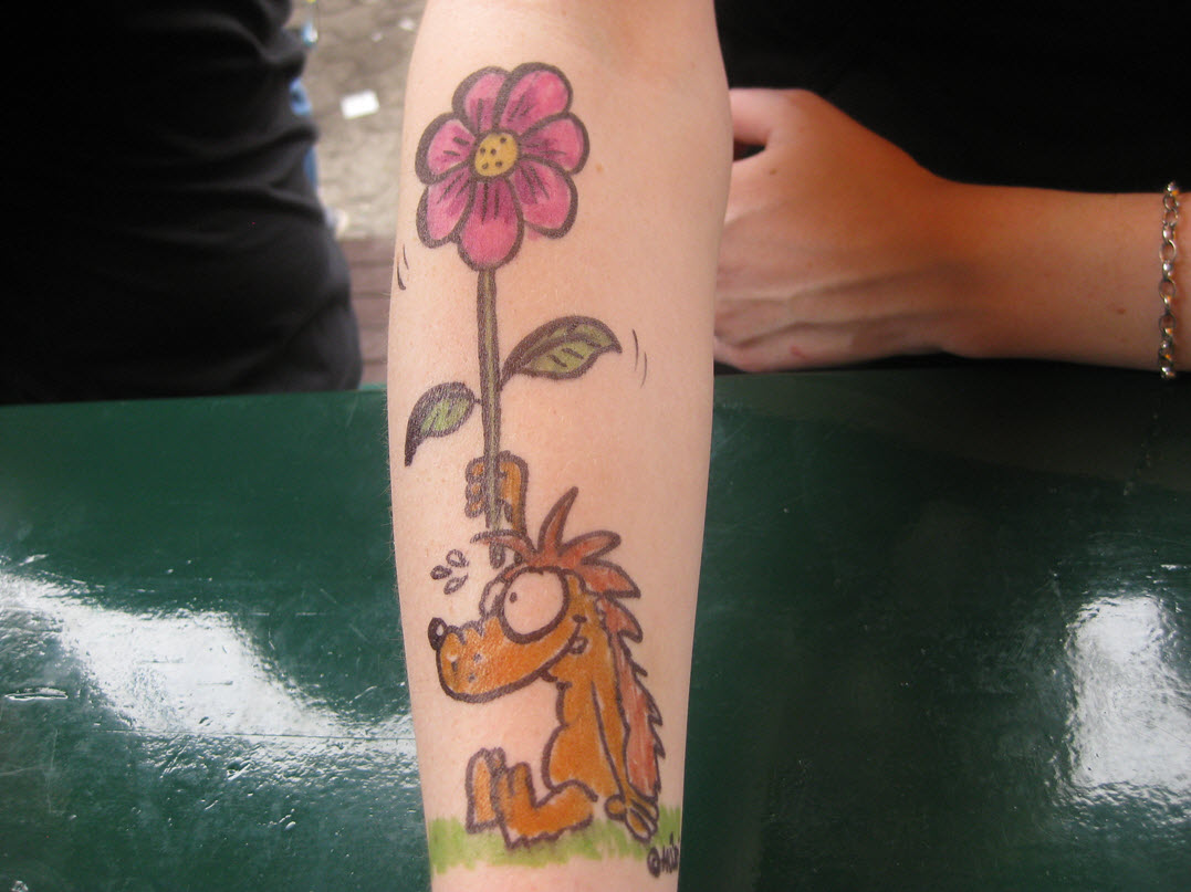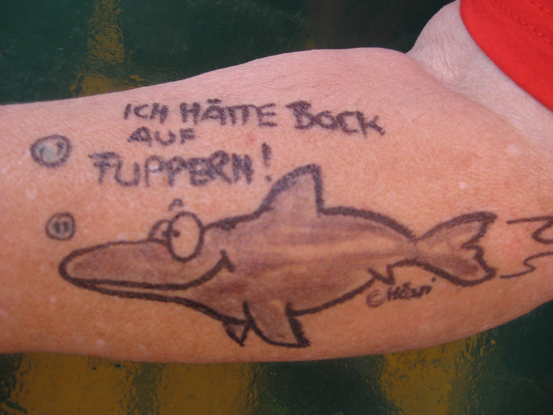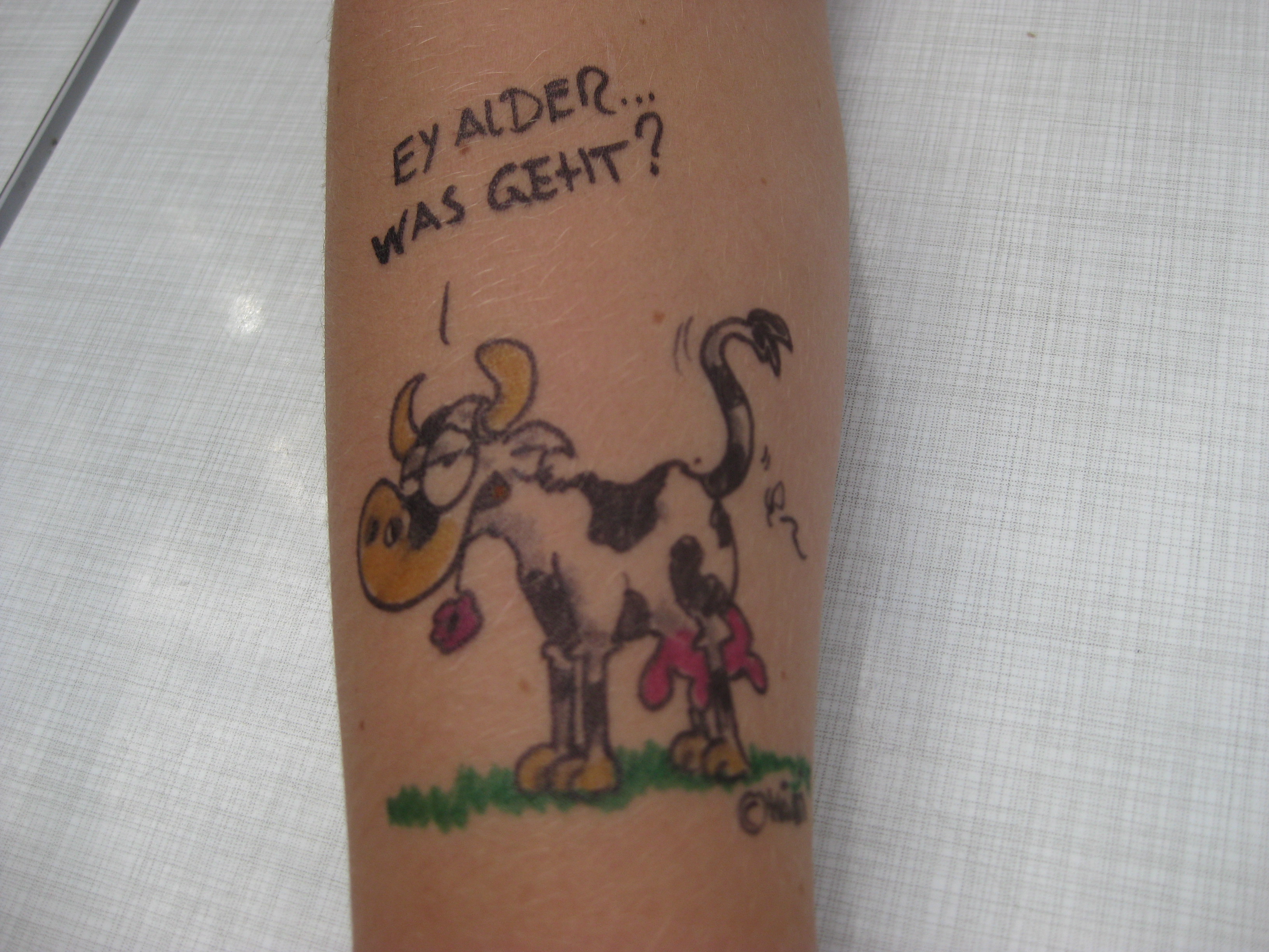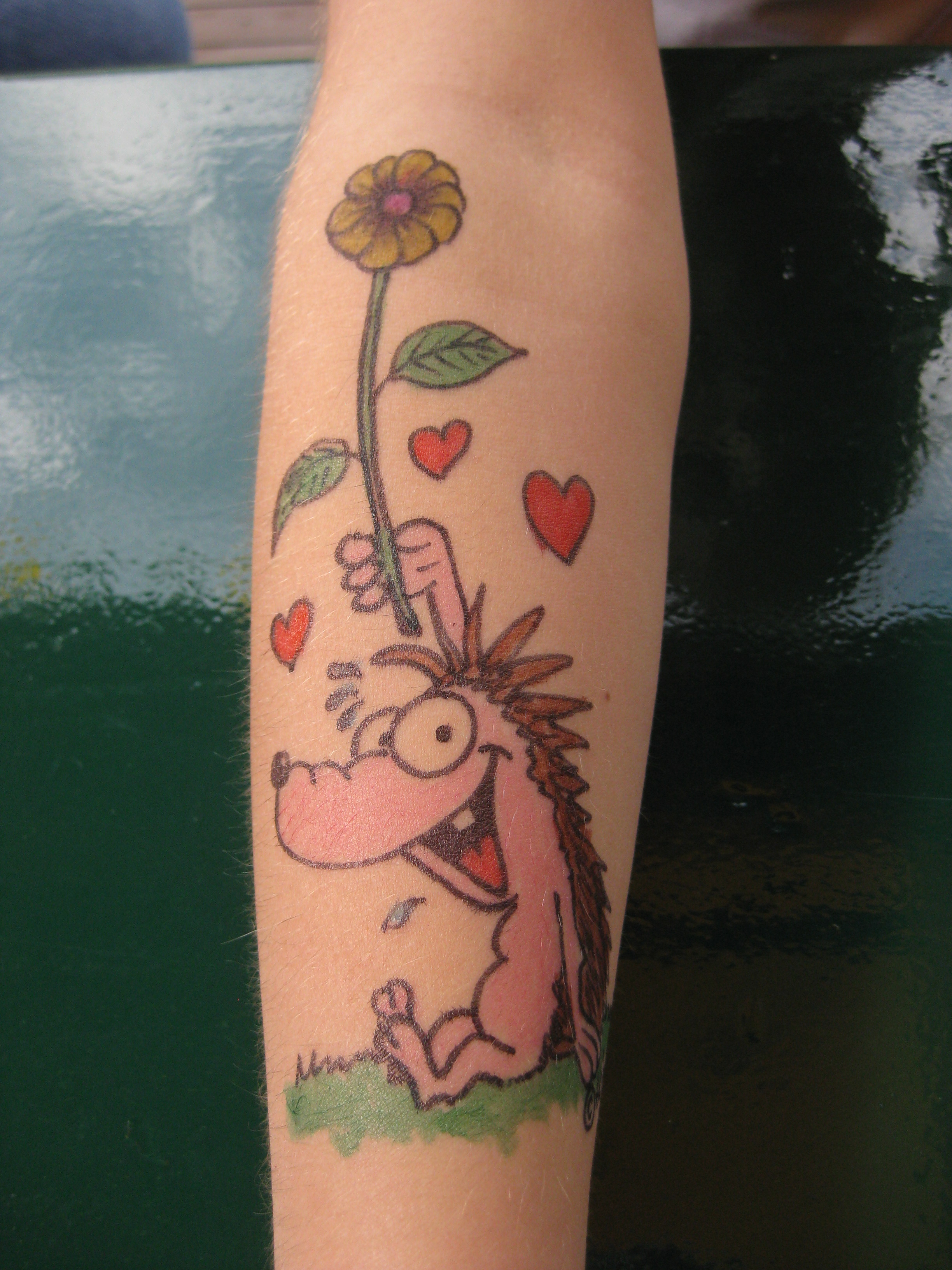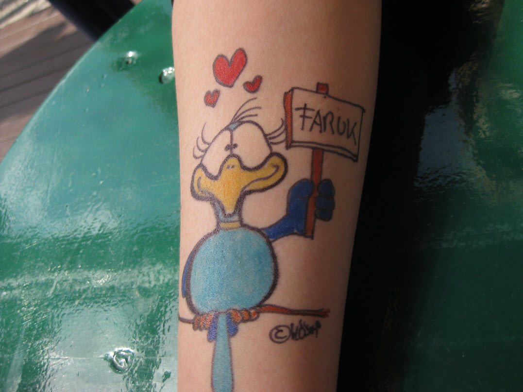 Jedes Jahr ist Hösti auf dem Esenser Schützenfest im “Alt Ostfriesland” bei der Familie Kanzler und zeichnet seine abwaschbaren Tattoos auf fast alle Körperteile.