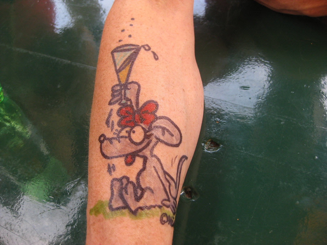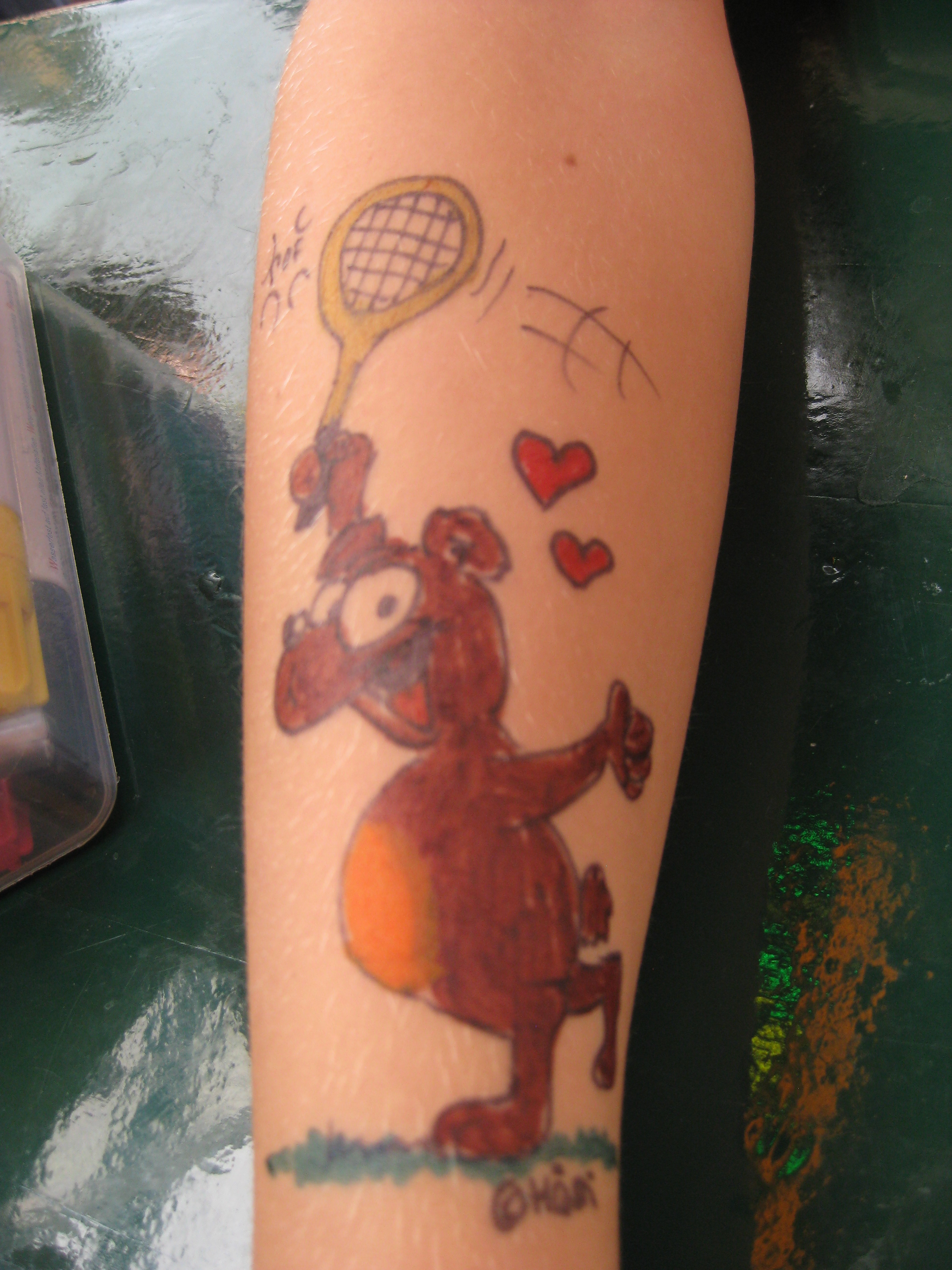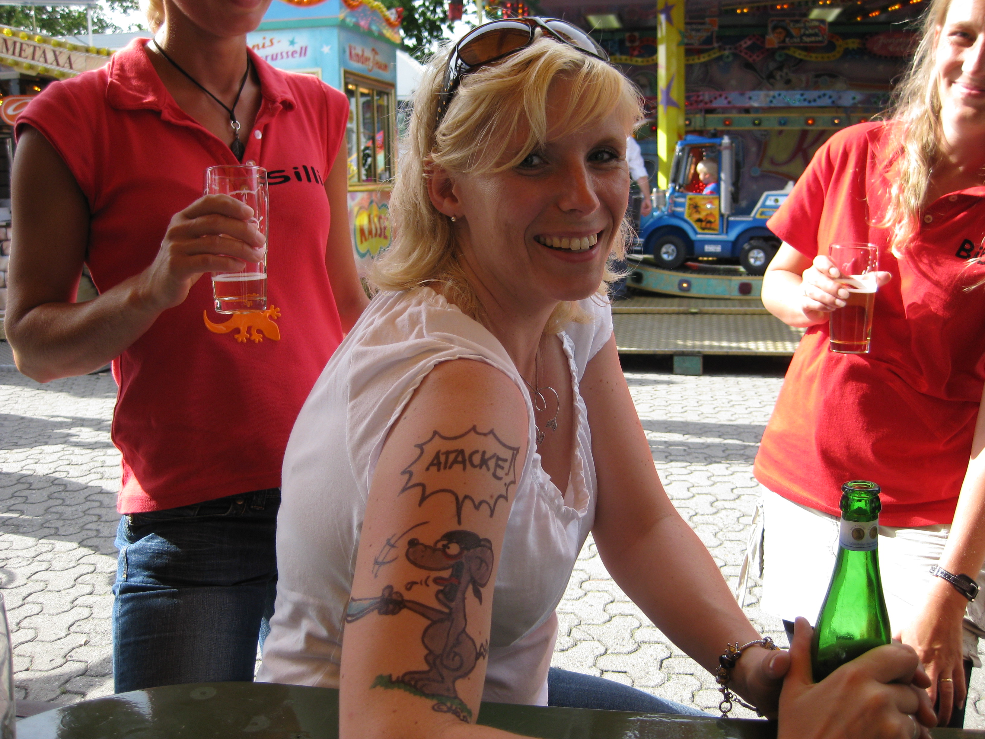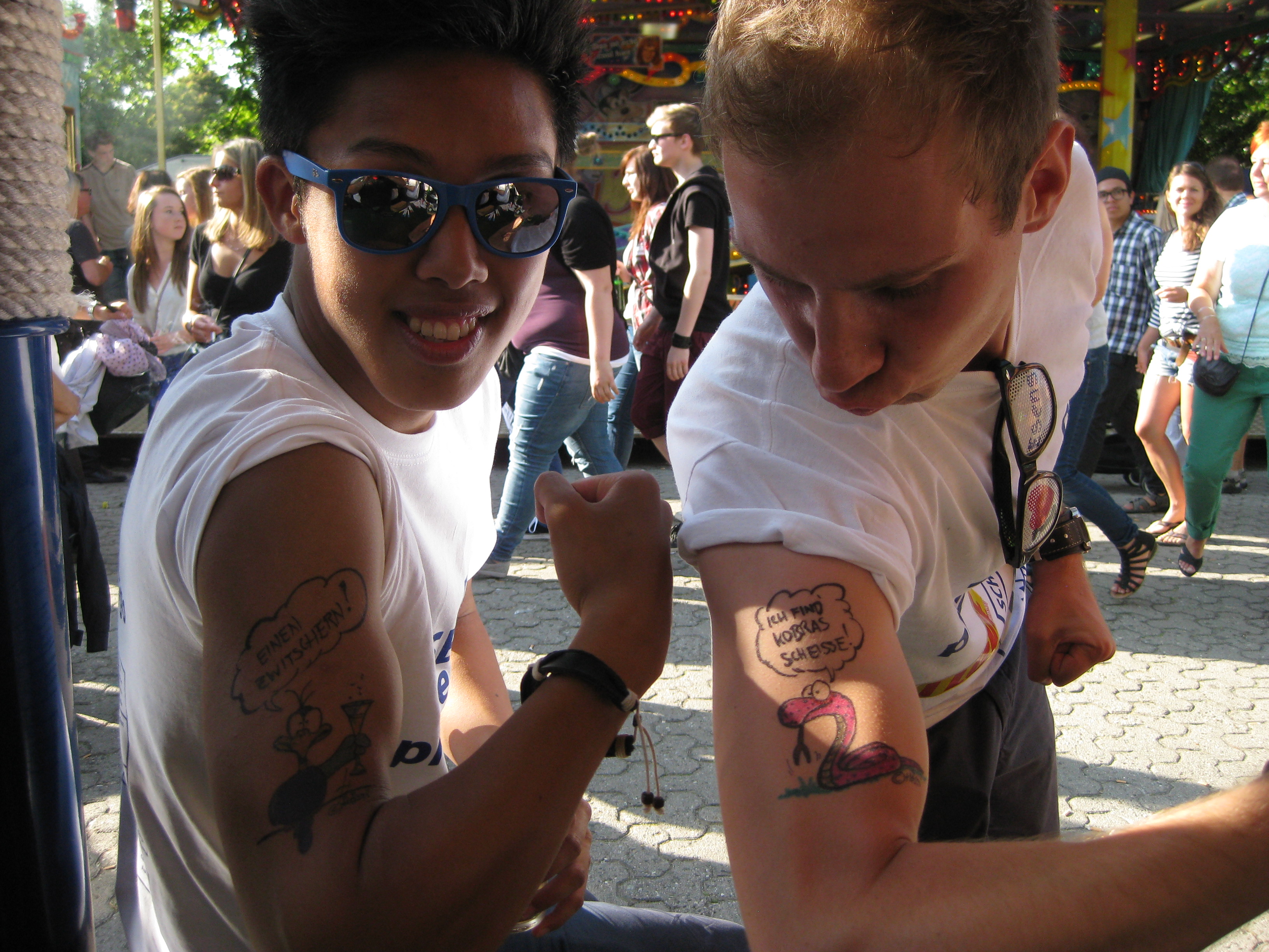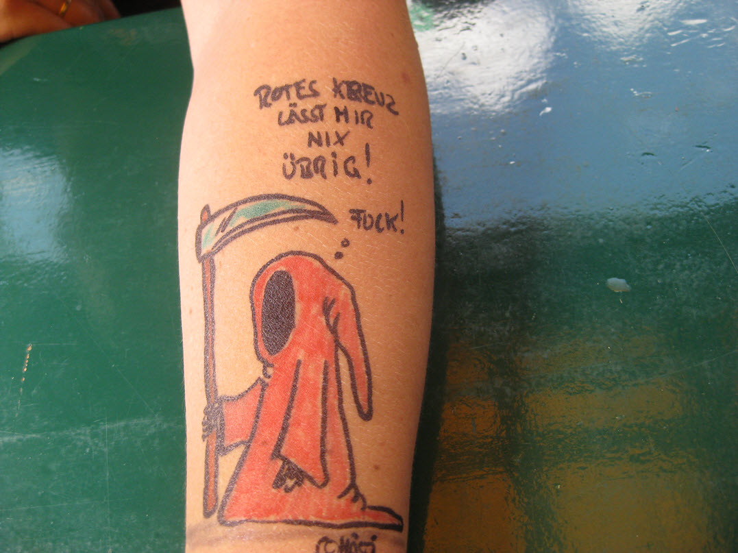 Jedes Jahr ist Hösti auf dem Esenser Schützenfest im “Alt Ostfriesland” bei der Familie Kanzler und zeichnet seine abwaschbaren Tattoos auf fast alle Körperteile.