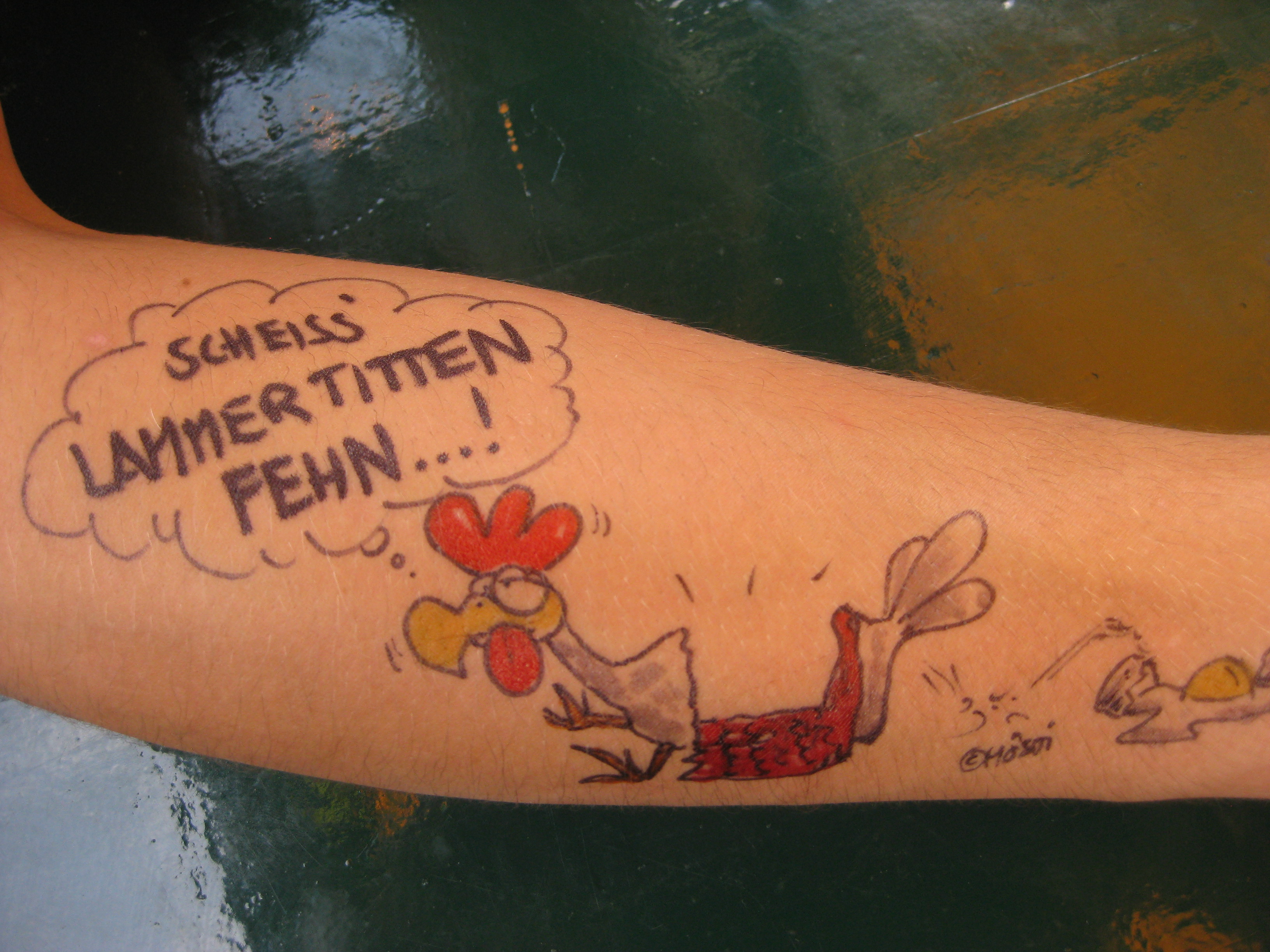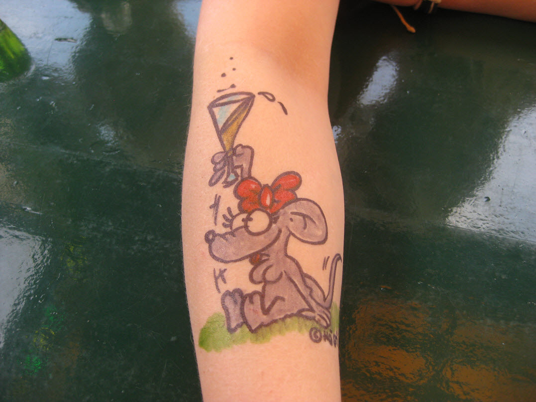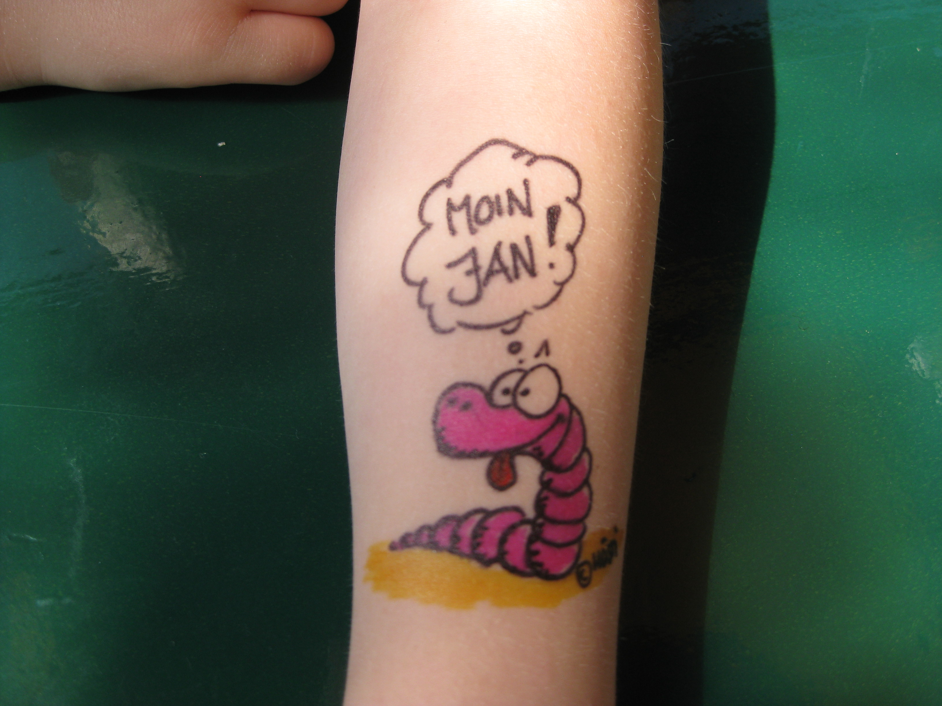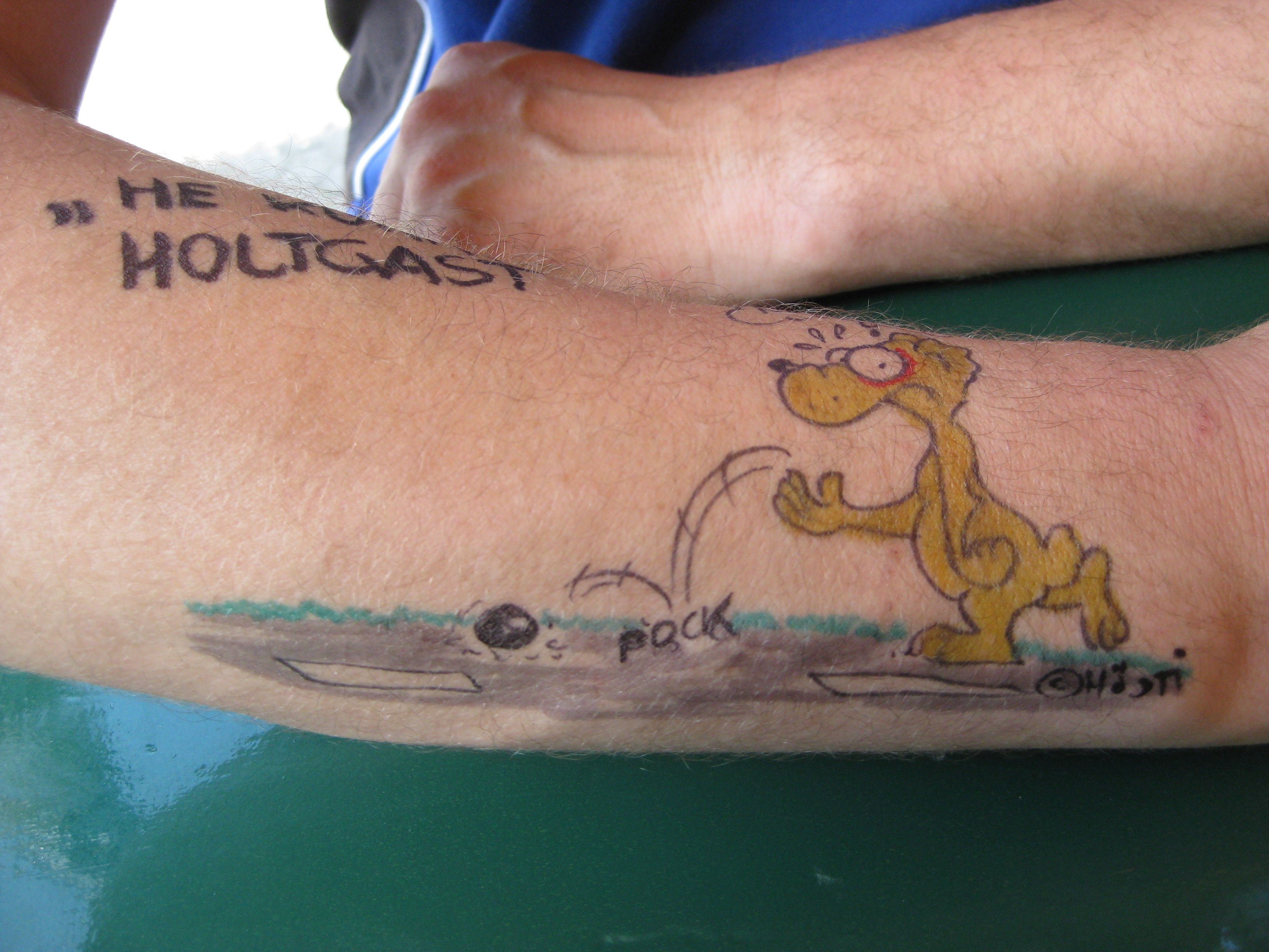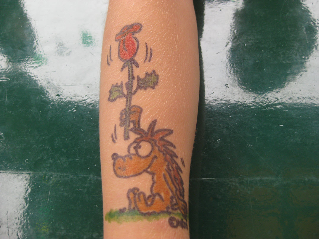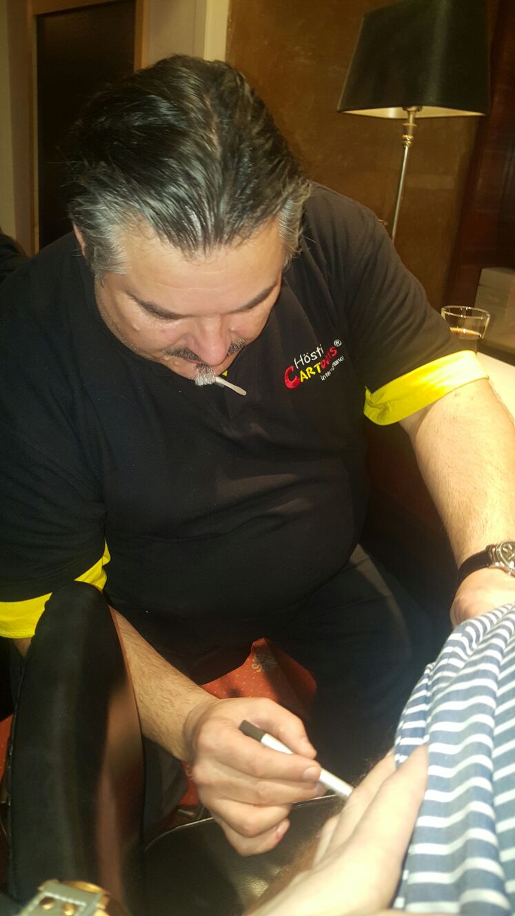 Jedes Jahr ist Hösti auf dem Esenser Schützenfest im “Alt Ostfriesland” bei der Familie Kanzler und zeichnet seine abwaschbaren Tattoos auf fast alle Körperteile.