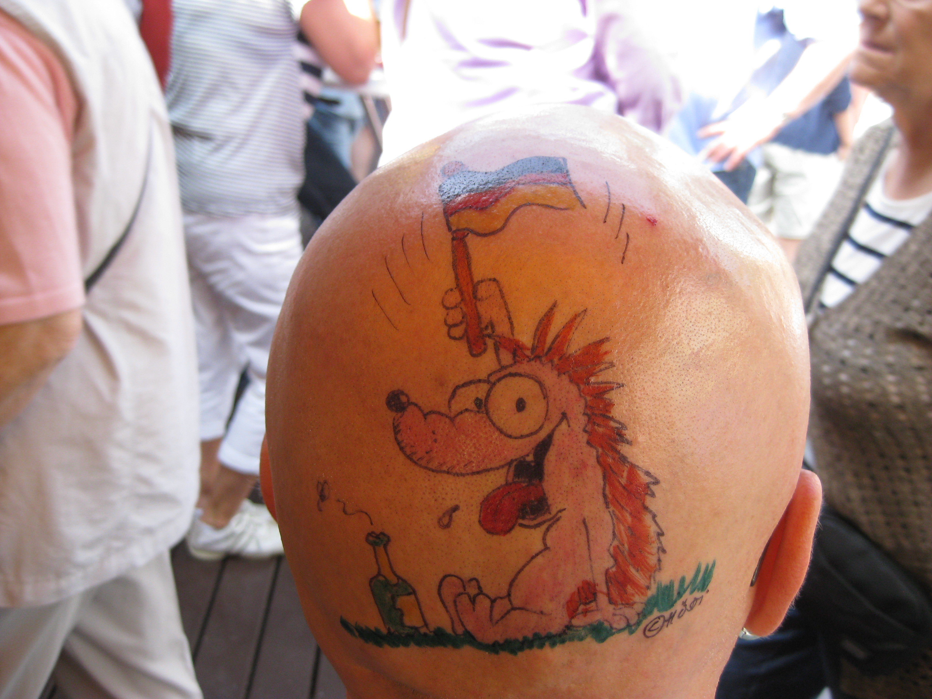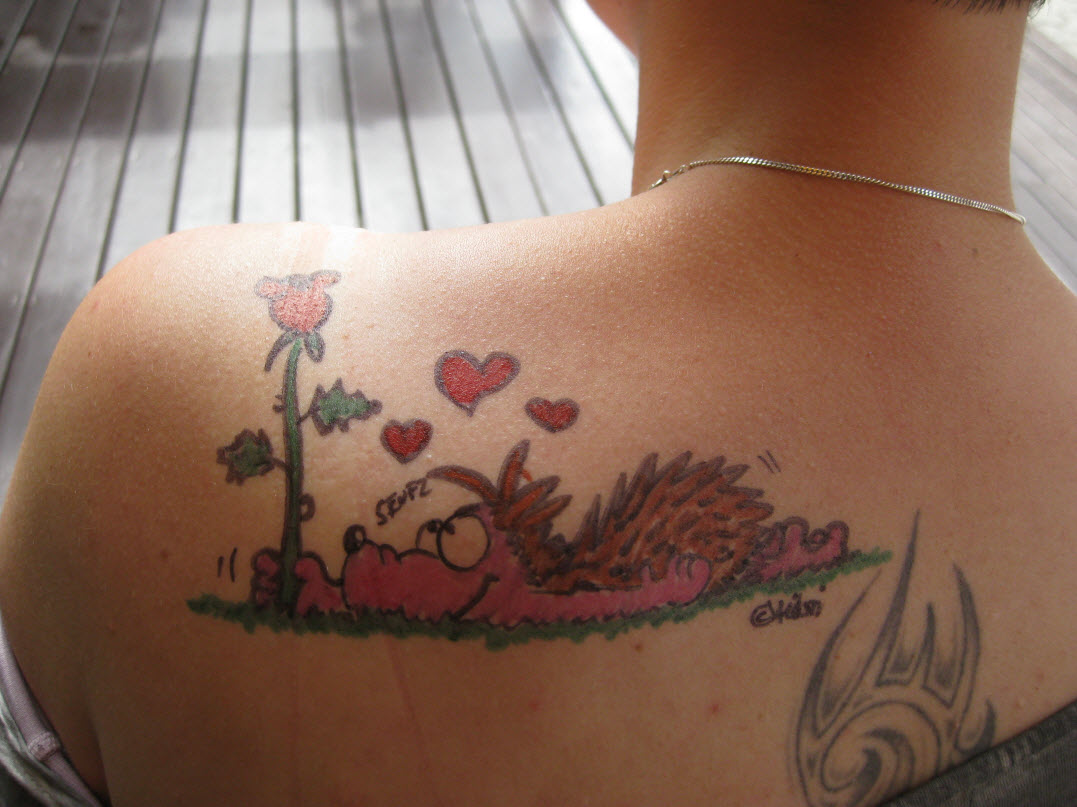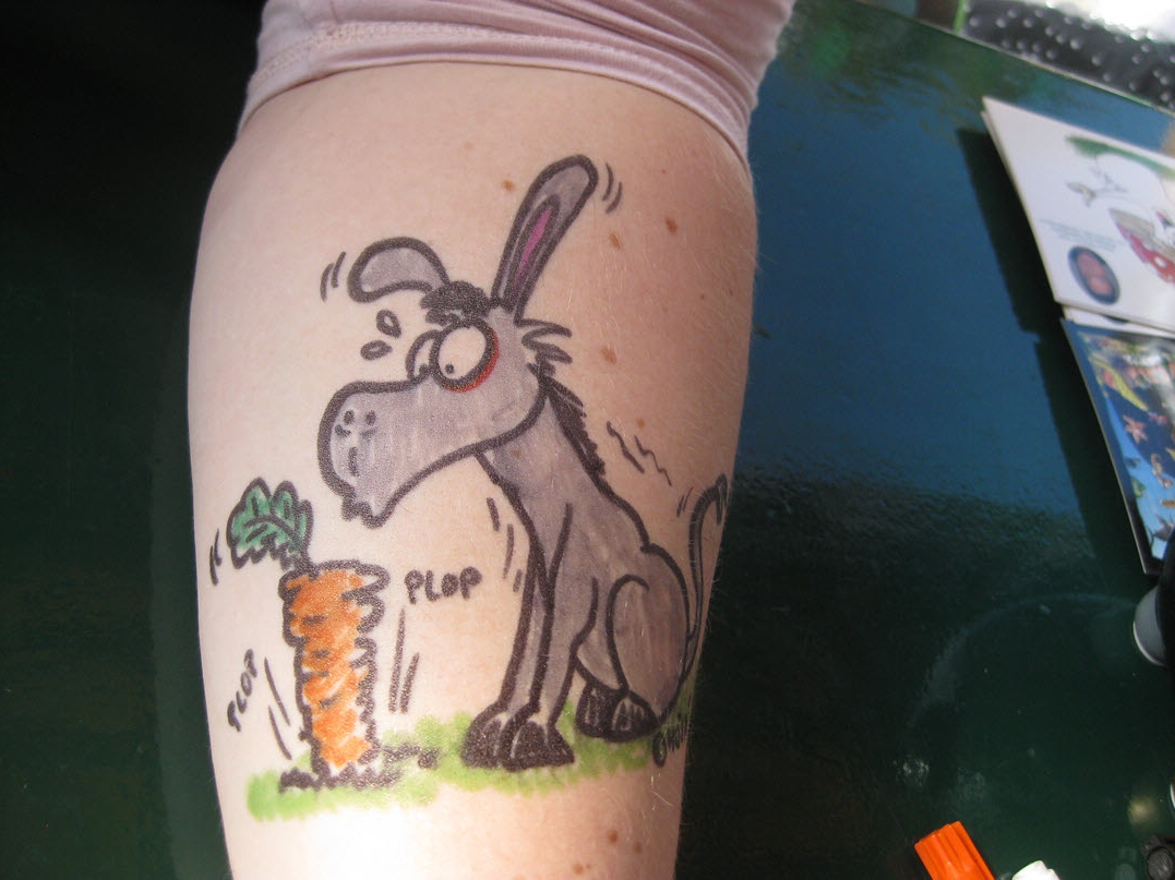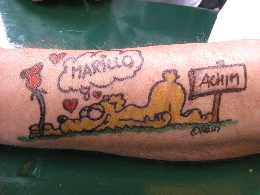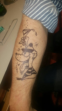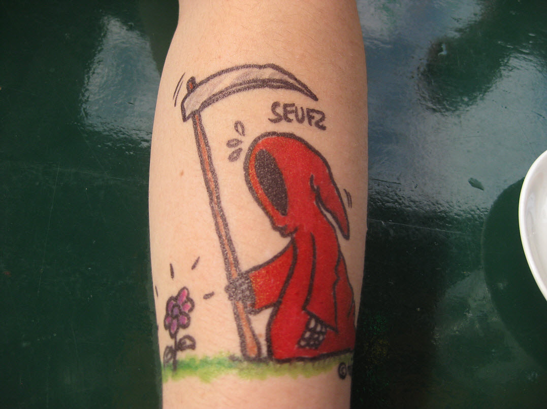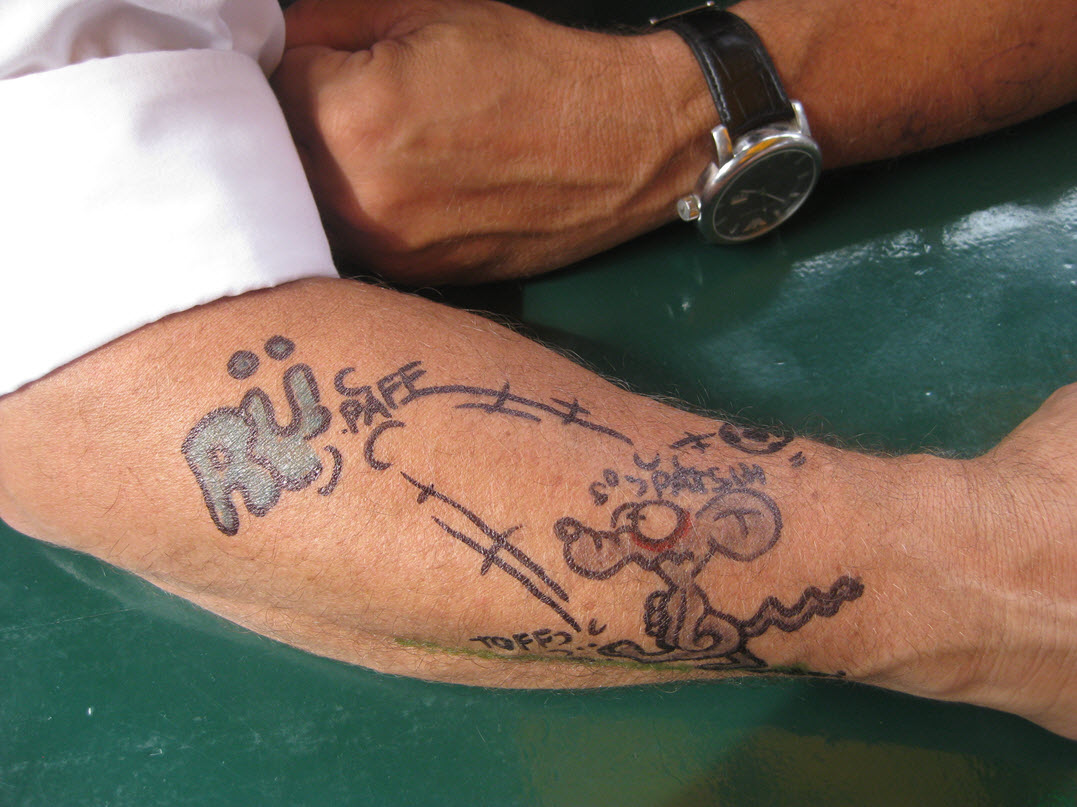 Jedes Jahr ist Hösti auf dem Esenser Schützenfest im “Alt Ostfriesland” bei der Familie Kanzler und zeichnet seine abwaschbaren Tattoos auf fast alle Körperteile.