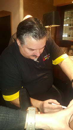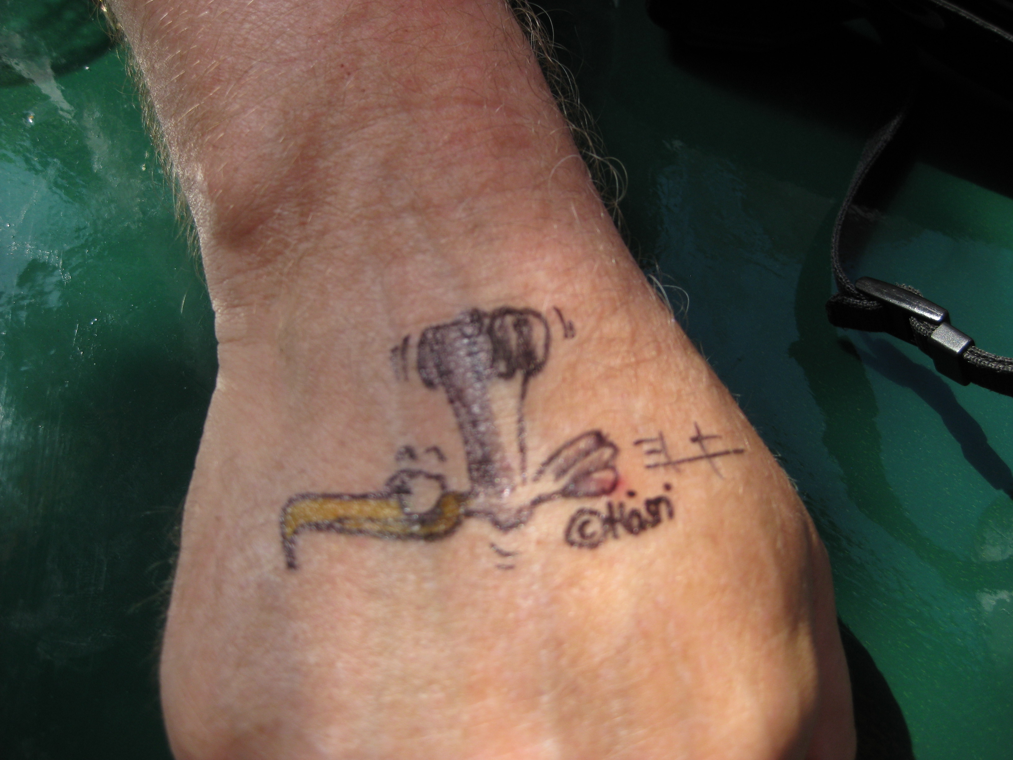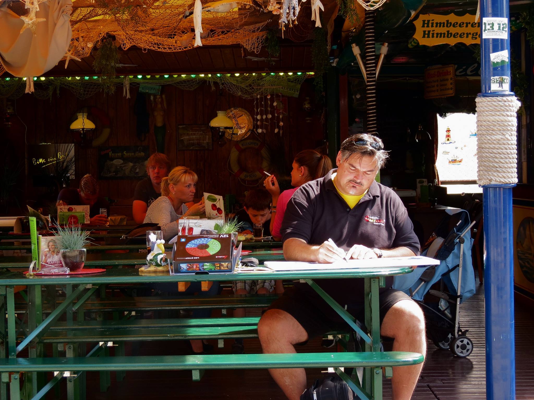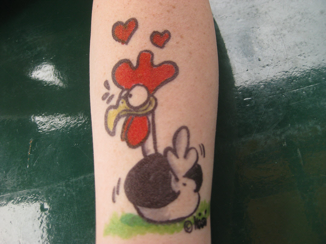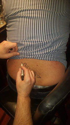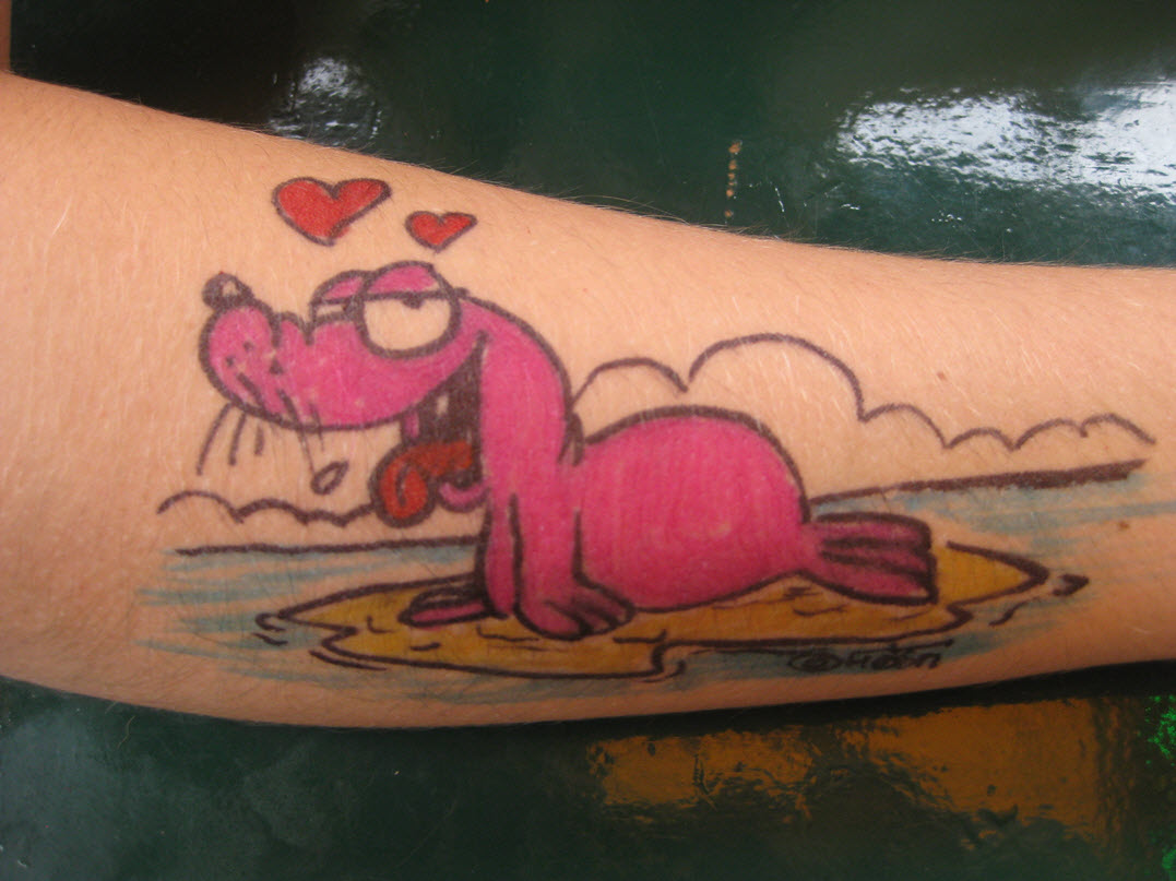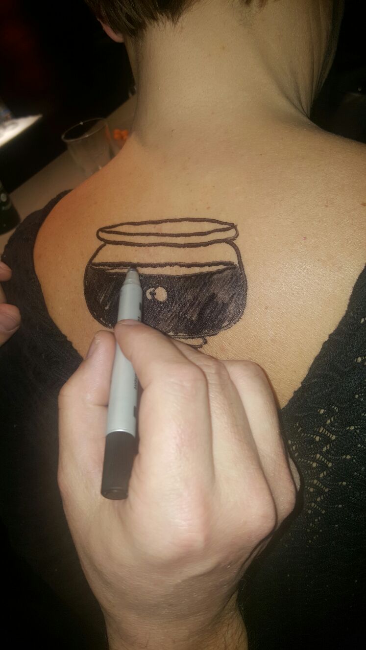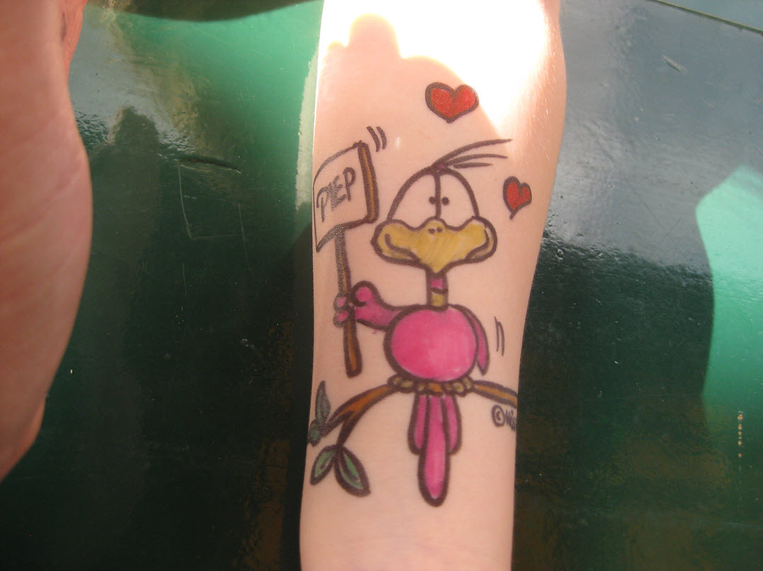 Jedes Jahr ist Hösti auf dem Esenser Schützenfest im “Alt Ostfriesland” bei der Familie Kanzler und zeichnet seine abwaschbaren Tattoos auf fast alle Körperteile.